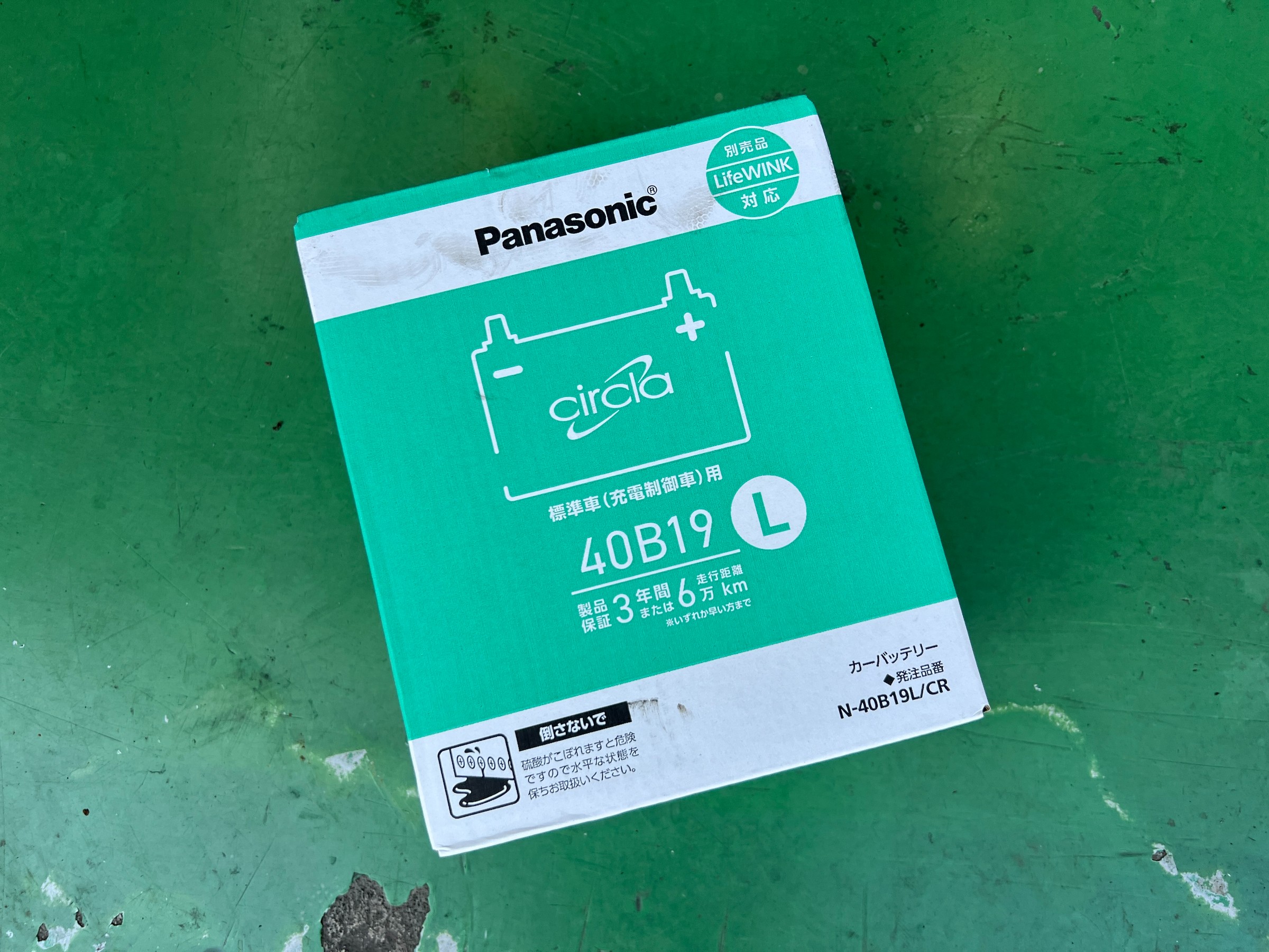 今回装着したバッテリーは Panasonic circla 40B19L