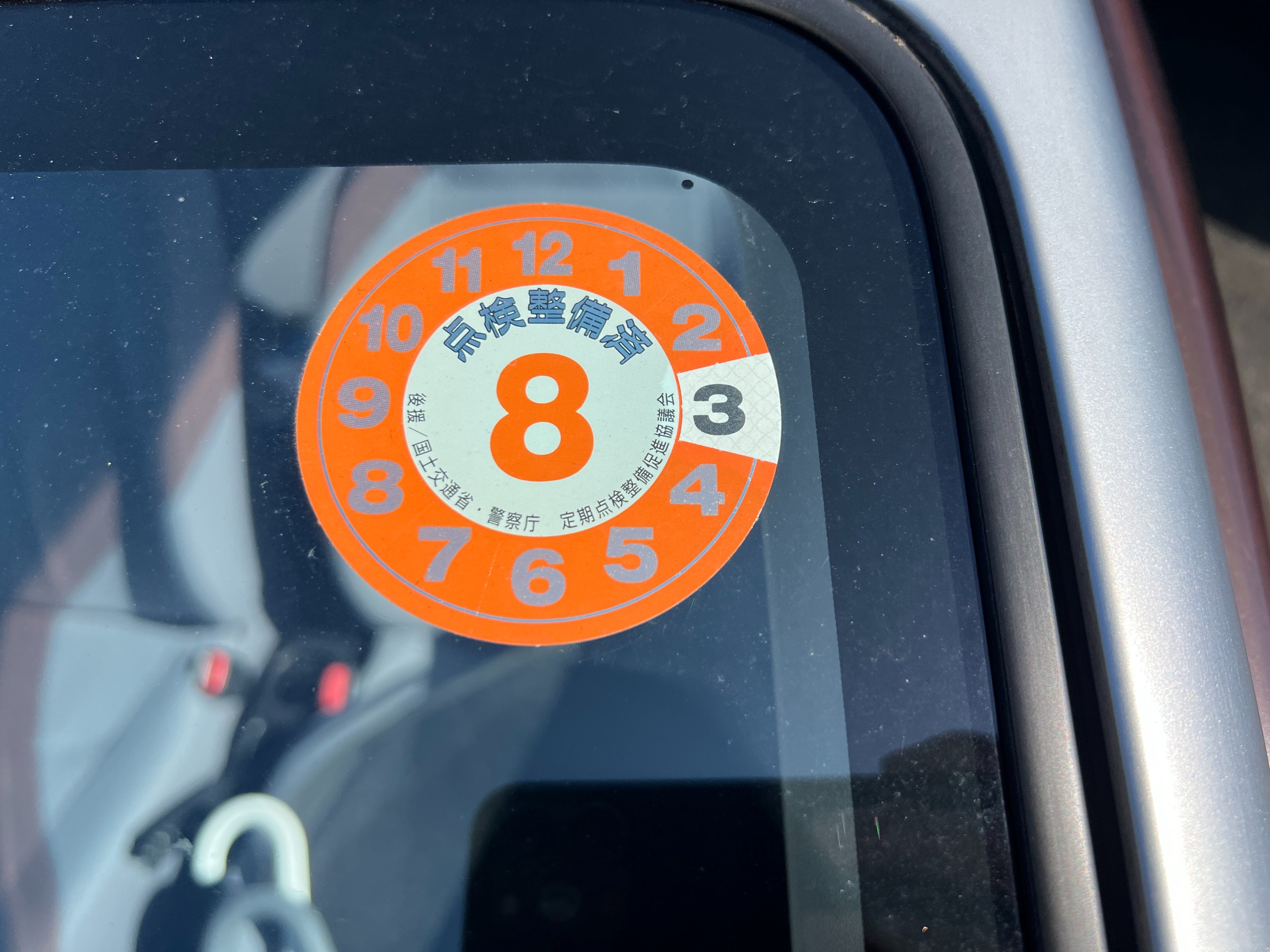 助手席側の丸いステッカー → 法令12ヶ月点検(定期点検)実施ステッカー