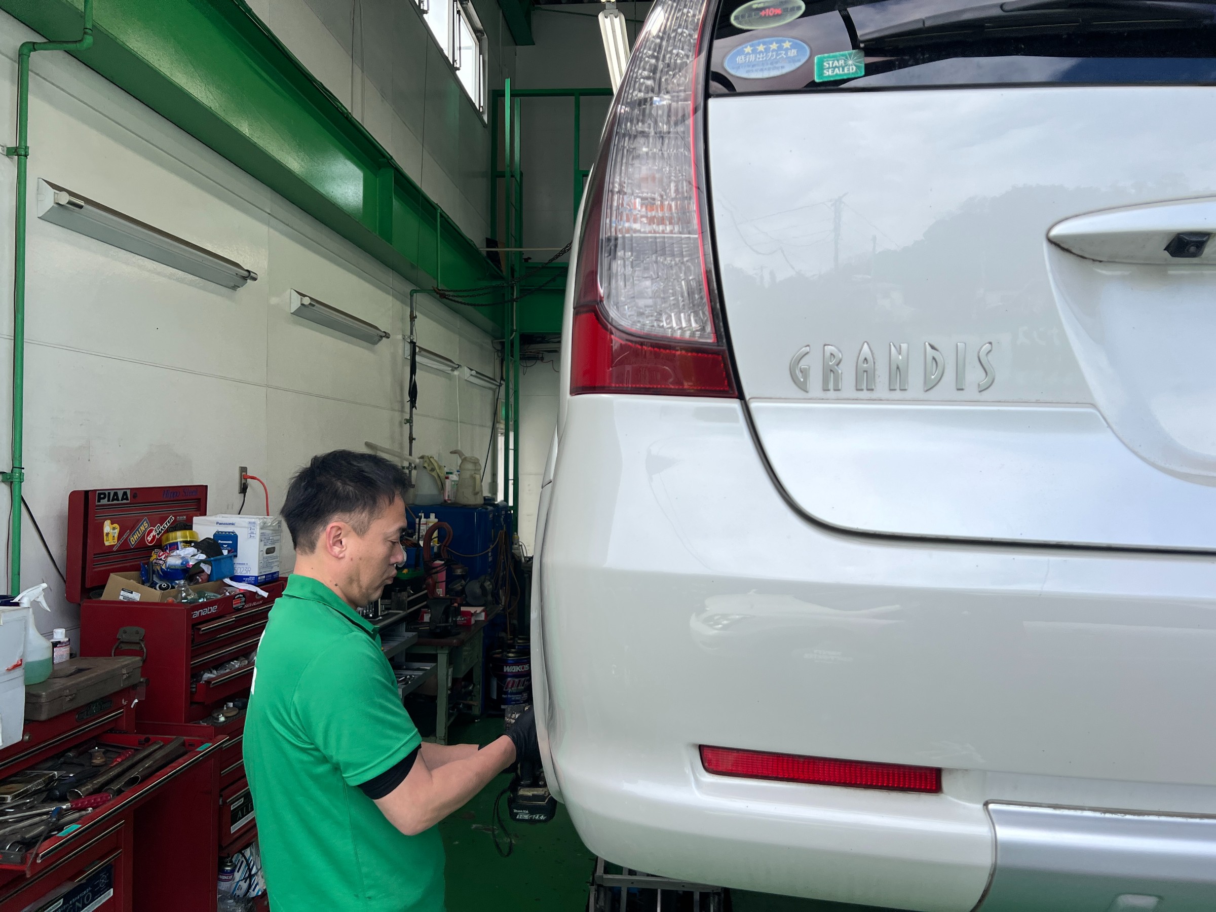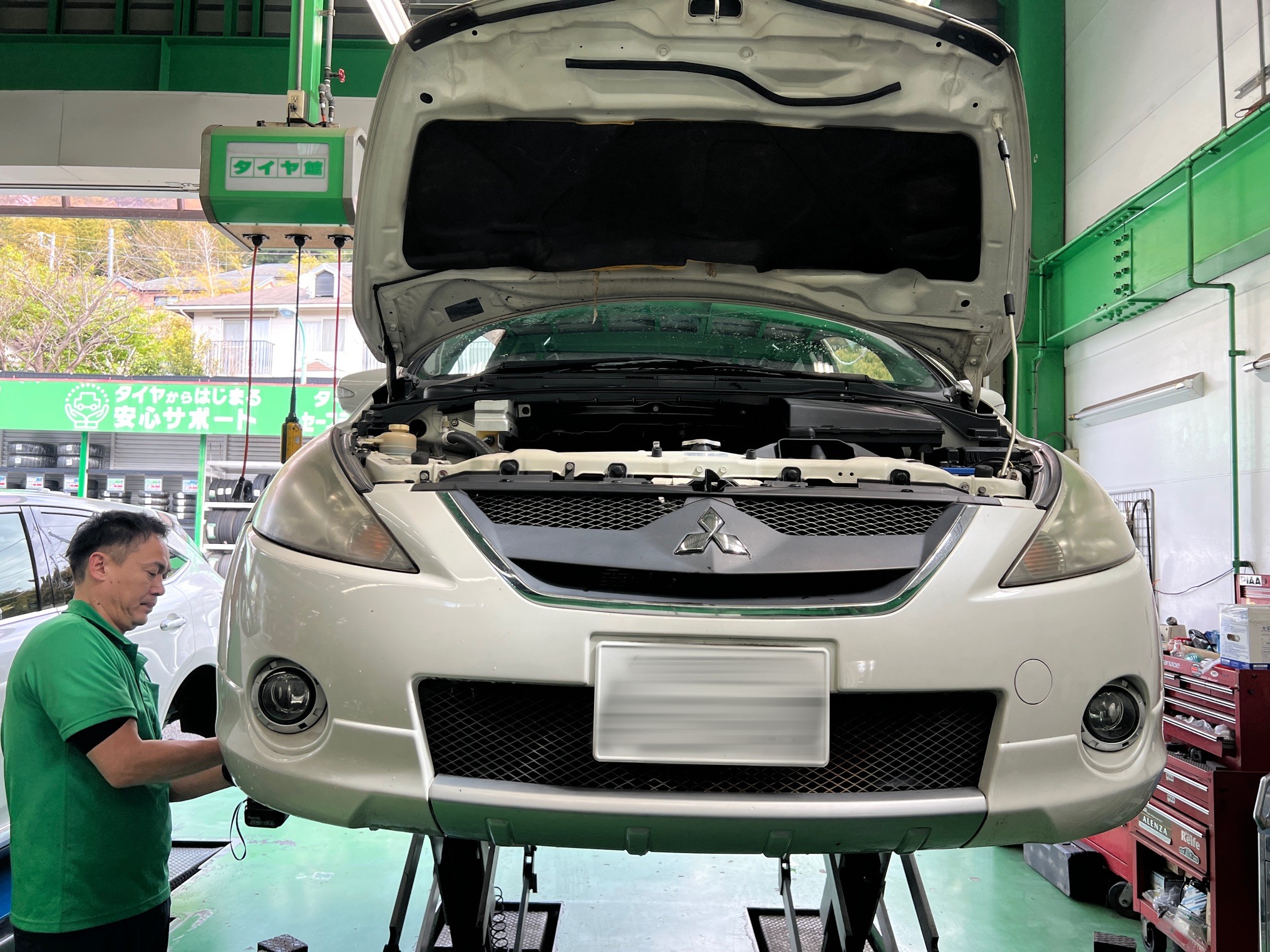 三菱グランディス (NA4W)車検整備 ファンベルト・エンジンオイル交換