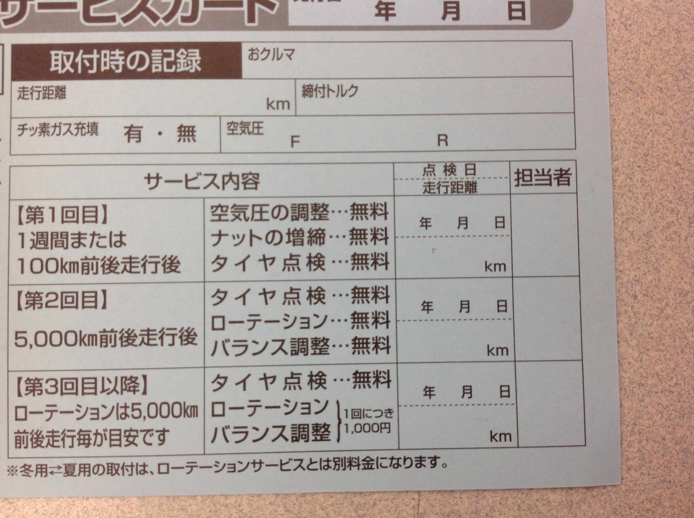 当店でご購入いただいてから5000キロぐらい走られたので一回目のローテーションのご依頼をいただきました。