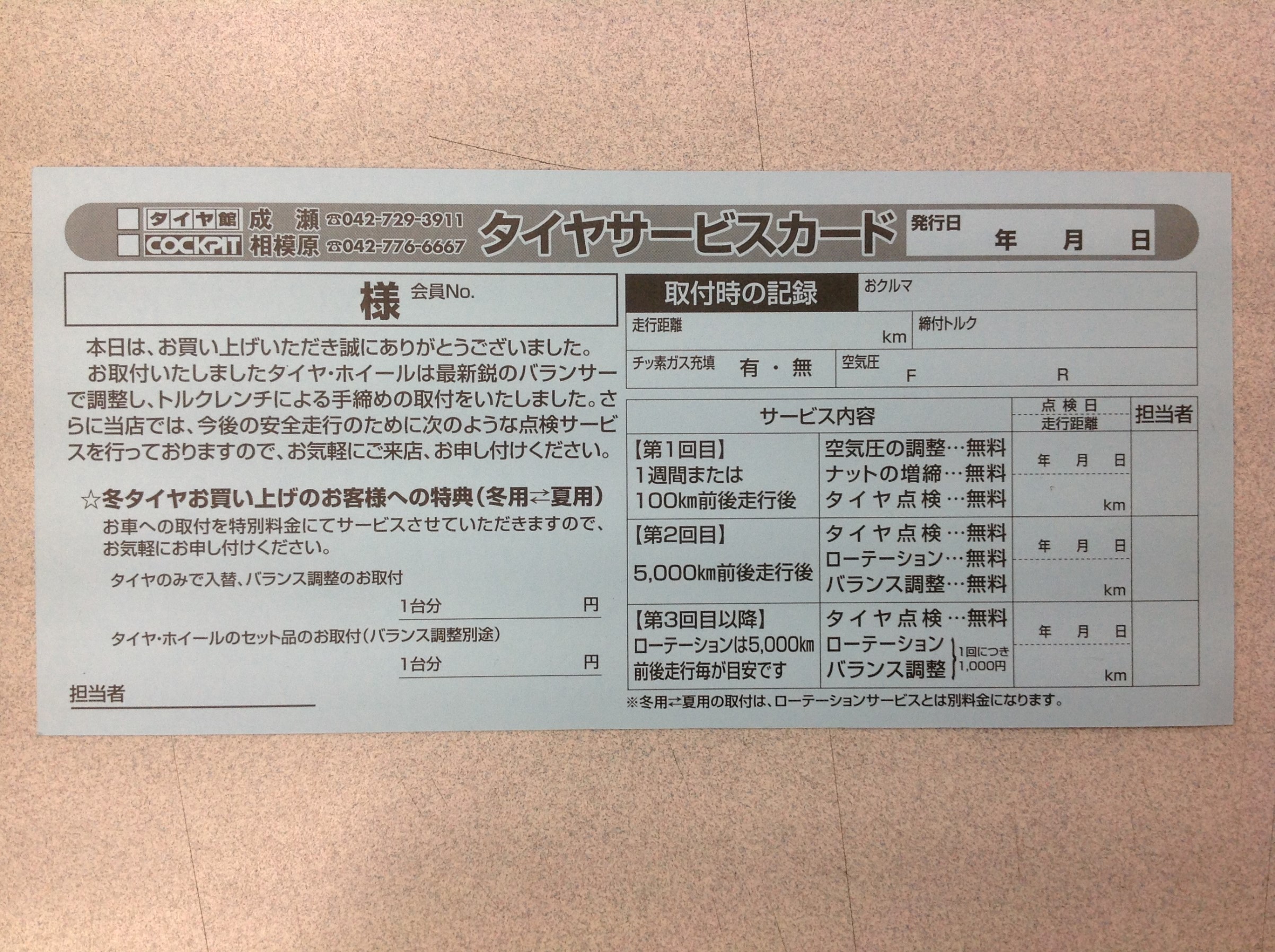タイヤ館成瀬で夏タイヤ4本ご購入いただくとタイヤ館成瀬店限定のカード発行させていただいてます。