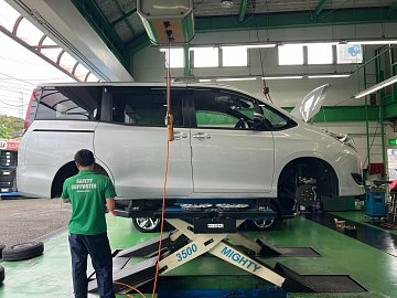 トヨタノアの法令12か月点検です。 走行距離もまだ少なめで、全体的に非常に良好なコンディションでした。 リフトアップして下まわり・足まわりを点検。 ブレーキは前後とも状態良好で、清掃・グリスアップを行い再組付け。 エンジンルーム内もオイル漏れやベルト類の劣化なし。 仕上げに洗車をして...