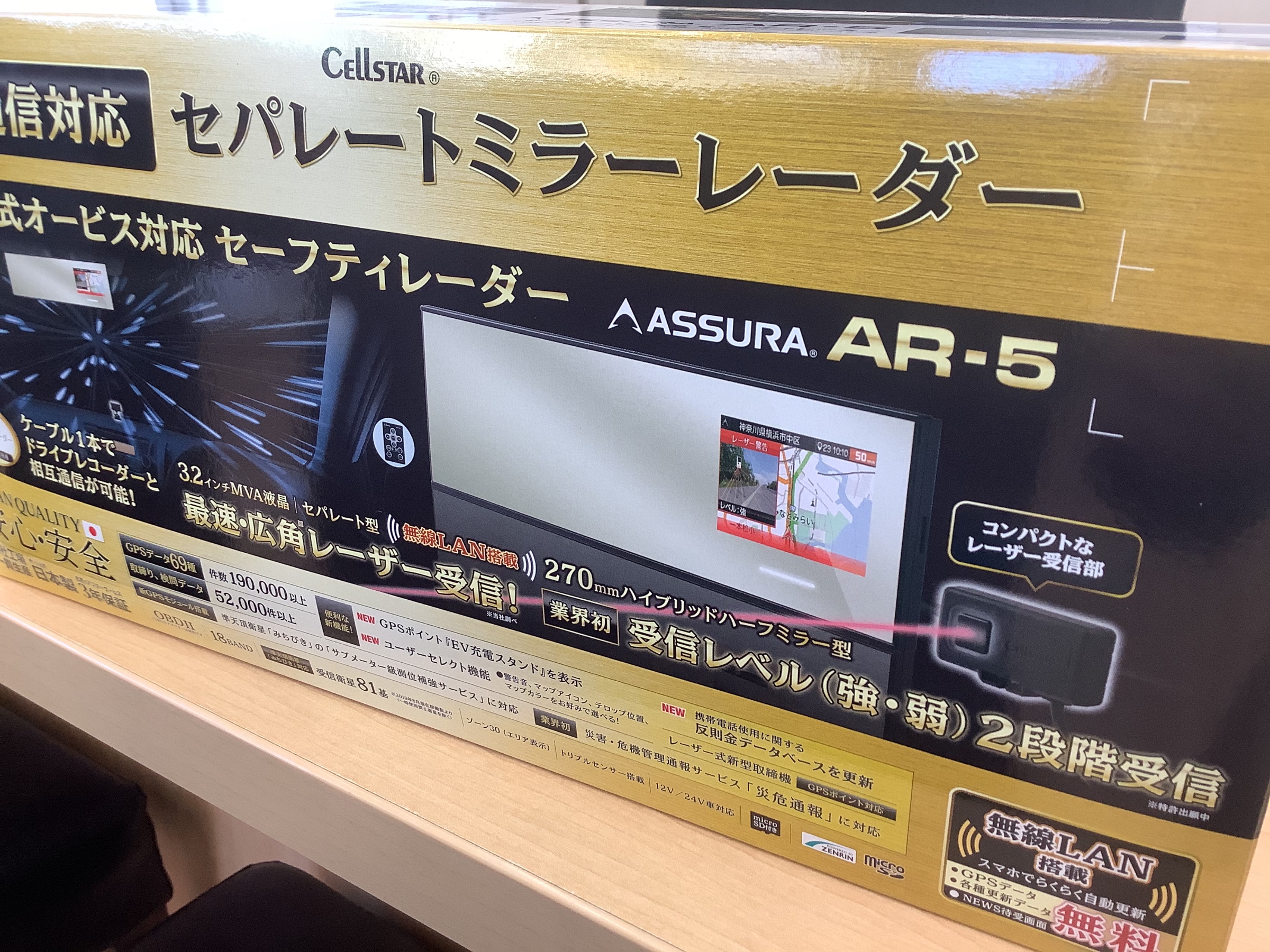 セルスター のASSURA AR-5というセパレートタイプのレーザー式オービス対応レーダーです。