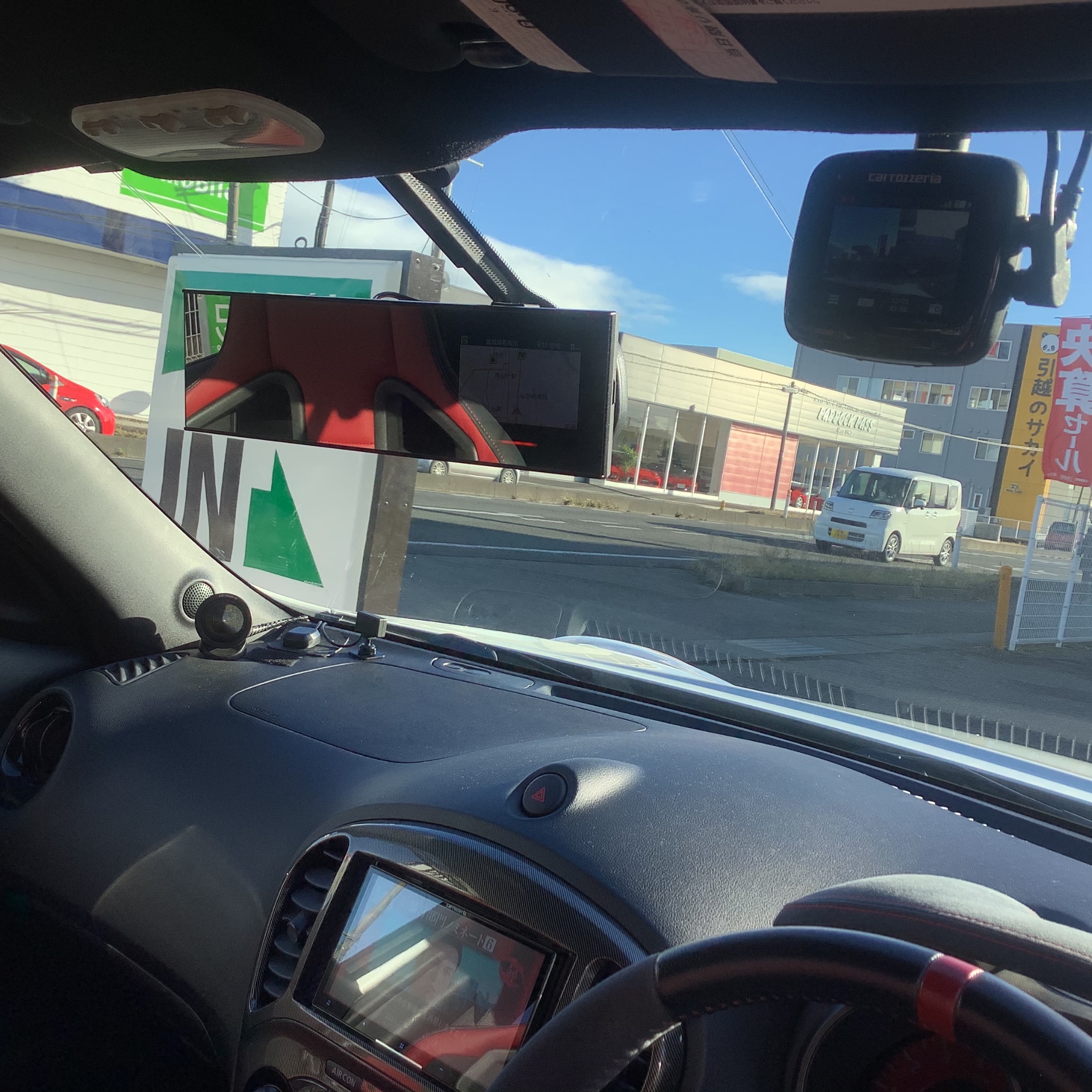 ダッシュボードに置くタイプも悪くはないのですが、ミラータイプだと取付もスッキリですね。