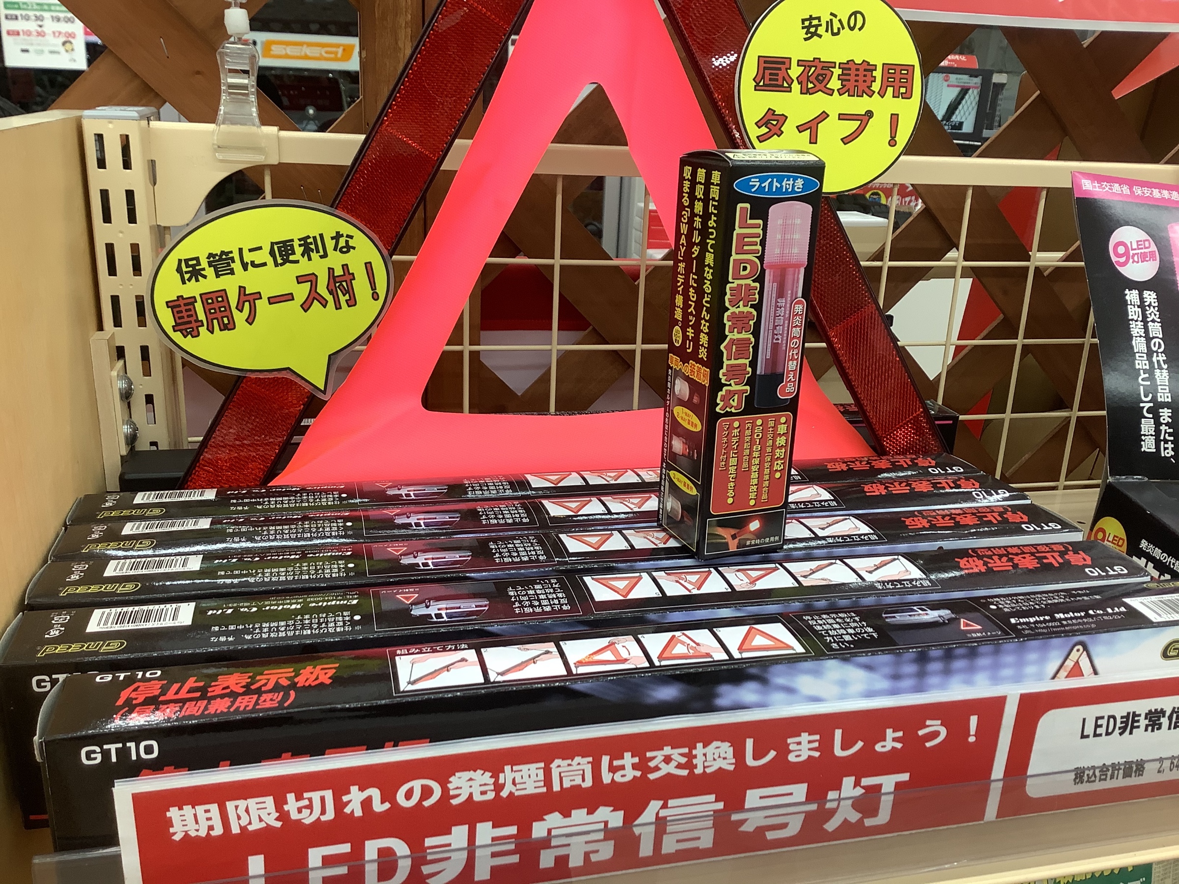 三角表示板は車にのってなかったり、発炎筒も期限が切れていたりということも少なくありません。