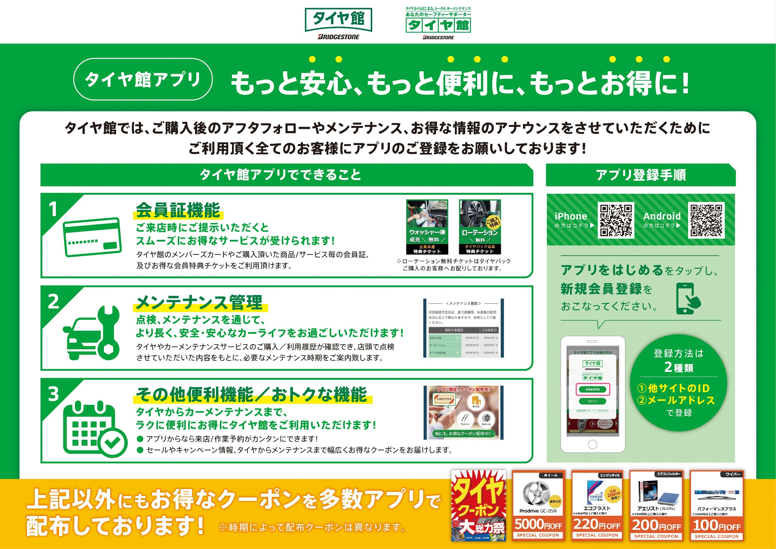 いつものタイヤ館をアプリでもっとお得に、便利にご利用ください!