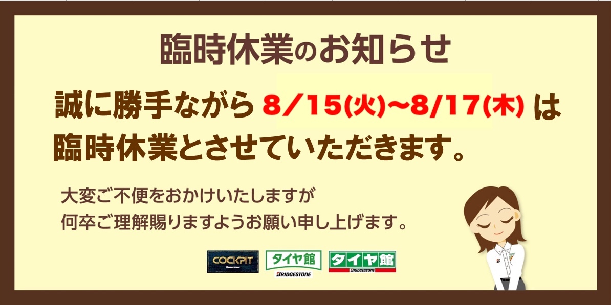 臨時休業のおしらせ ポスト 2023年8月14日 誠に勝手ながら、8/15(火)〜8/17(木)は臨時休業とさせていただきます。 大変ご不便をおかけいたしますが、何卒ご理解賜りますようお願い申し上げます。 カテゴリ:お知らせ