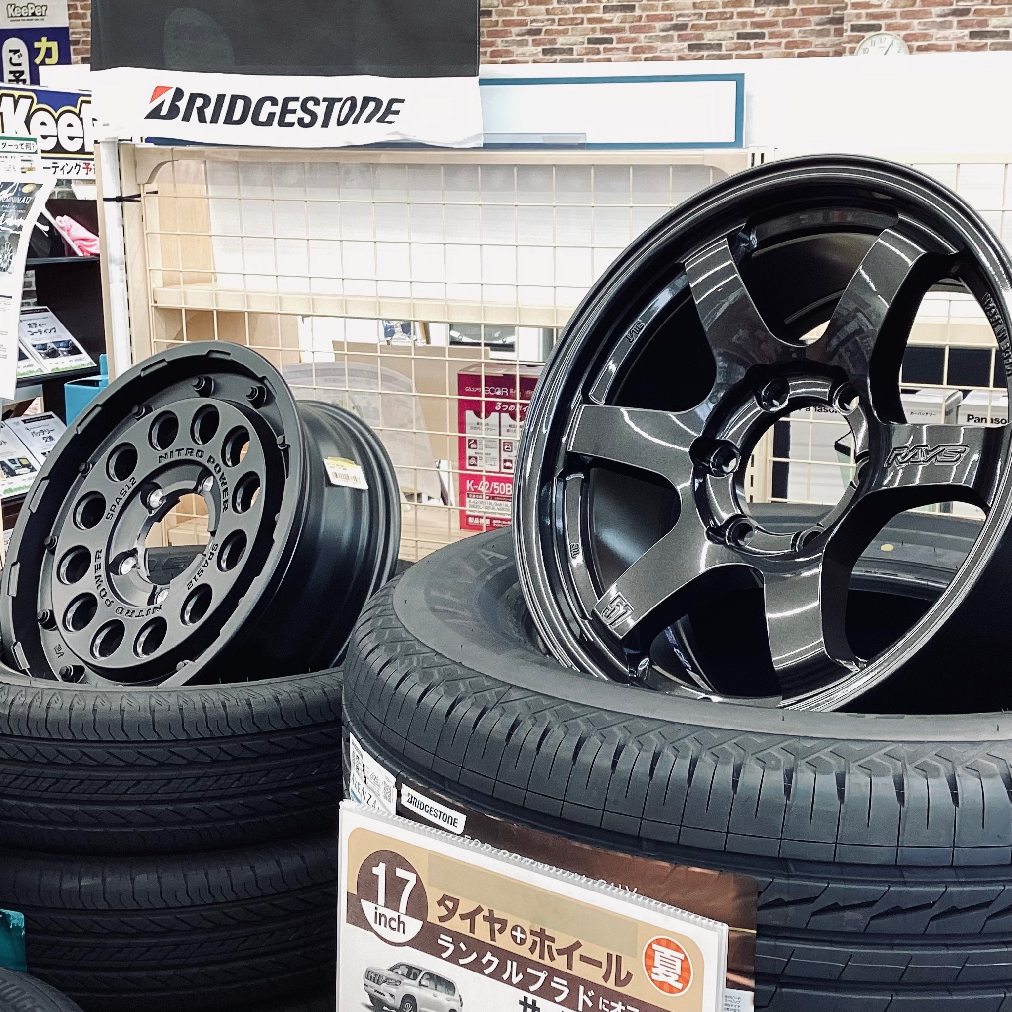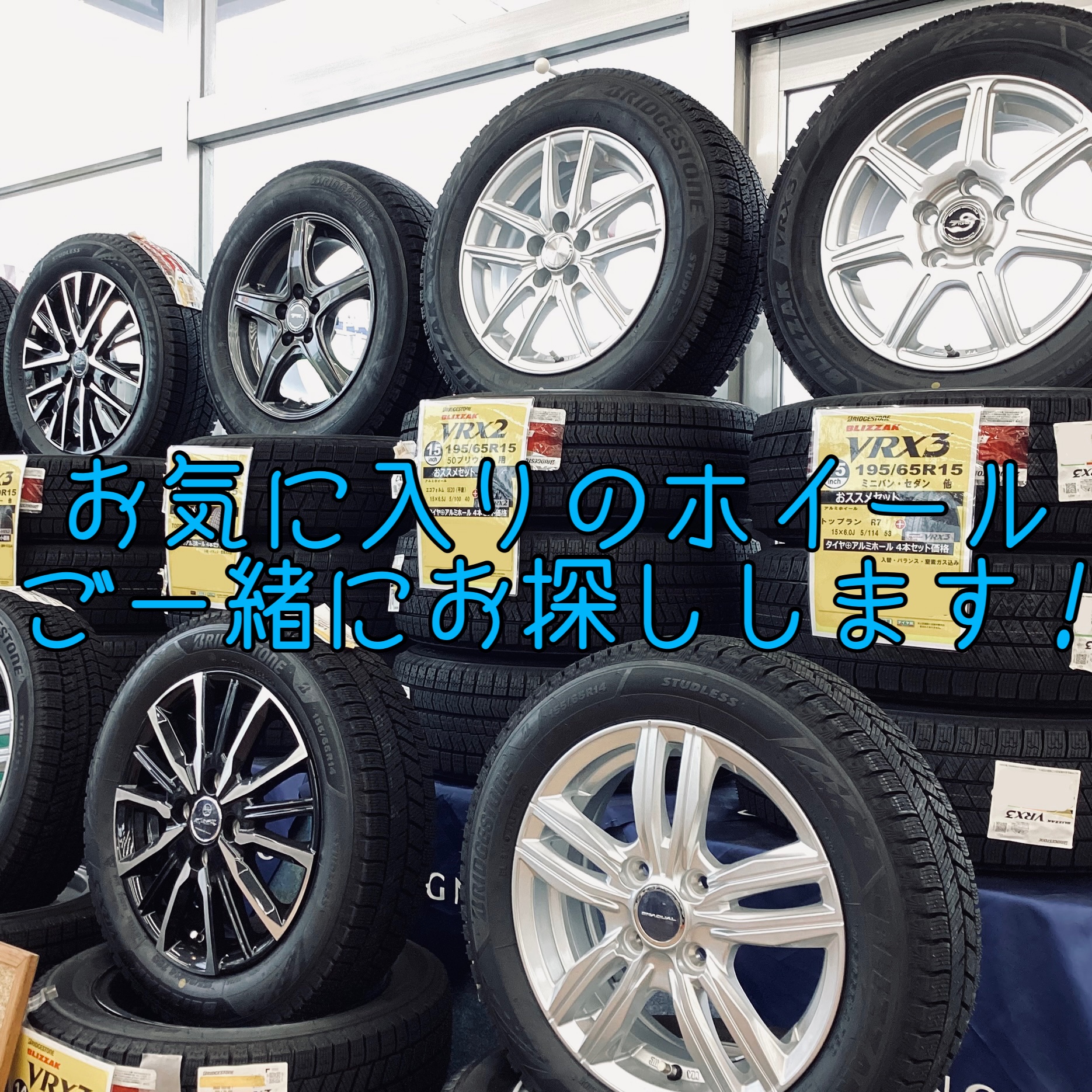 入口付近ではお持ち帰りもできます冬タイヤセットを早速展示中です!