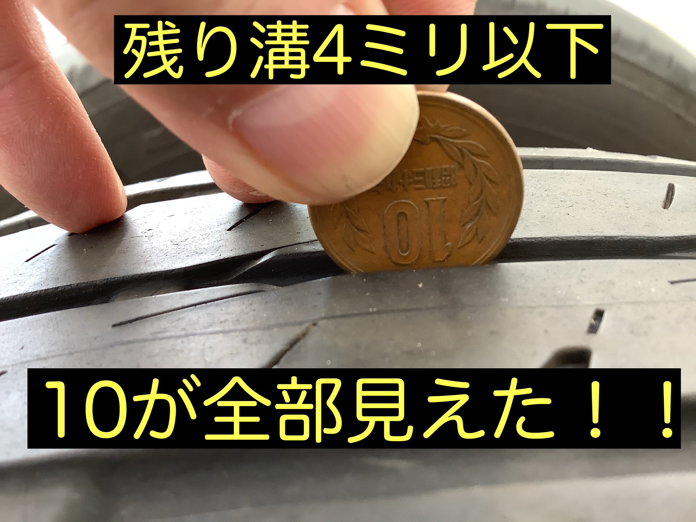 では、実際の交換目安はというと、残り溝4ミリ以下と言われています。