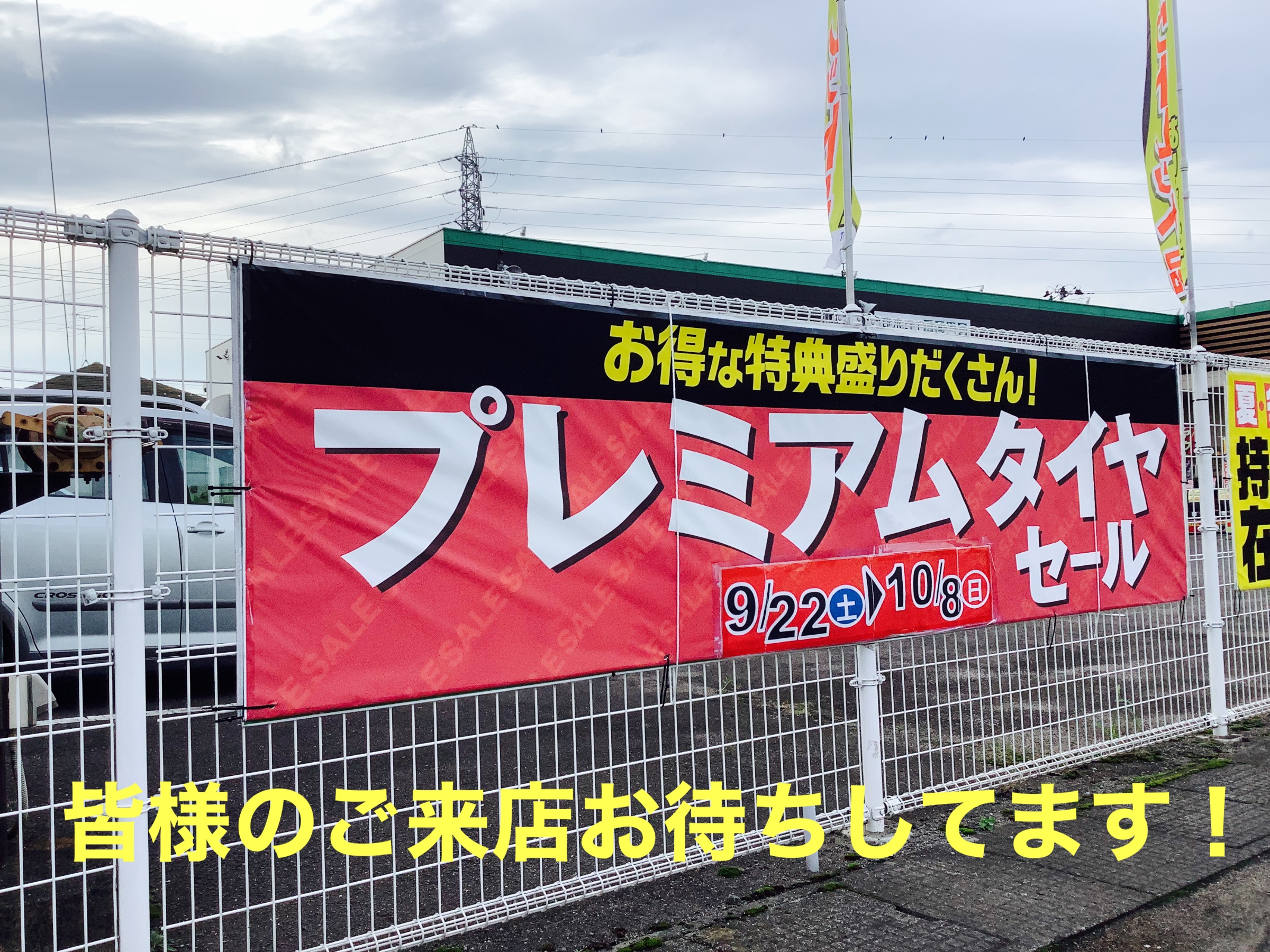 本日はあいにくの空模様ですがプレミアムタイヤセールにご来店ありがとうございます。