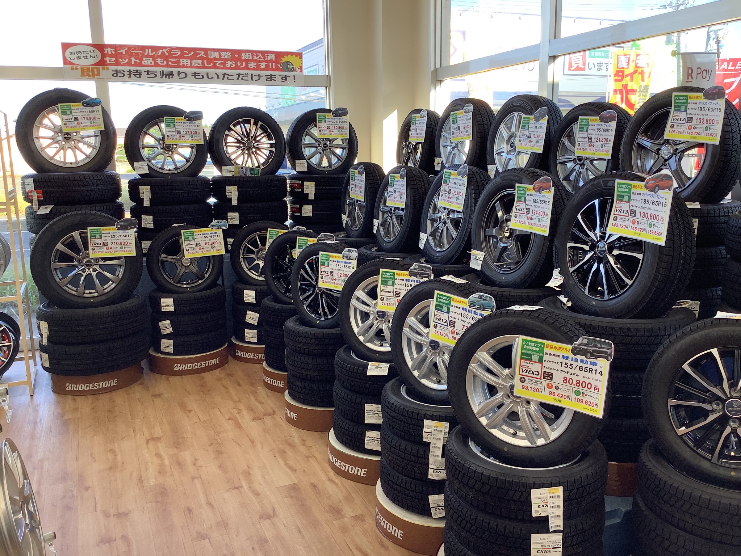 タイヤ館名取はお得なホイールセットを準備しています。すぐにお持ち帰り、お取り付け頂けます!