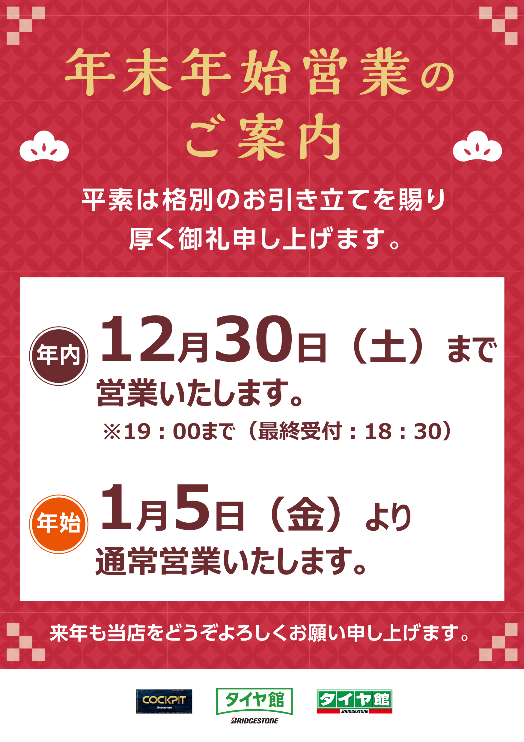 本年もタイヤ館名取をご愛顧いただきありがとうございます。