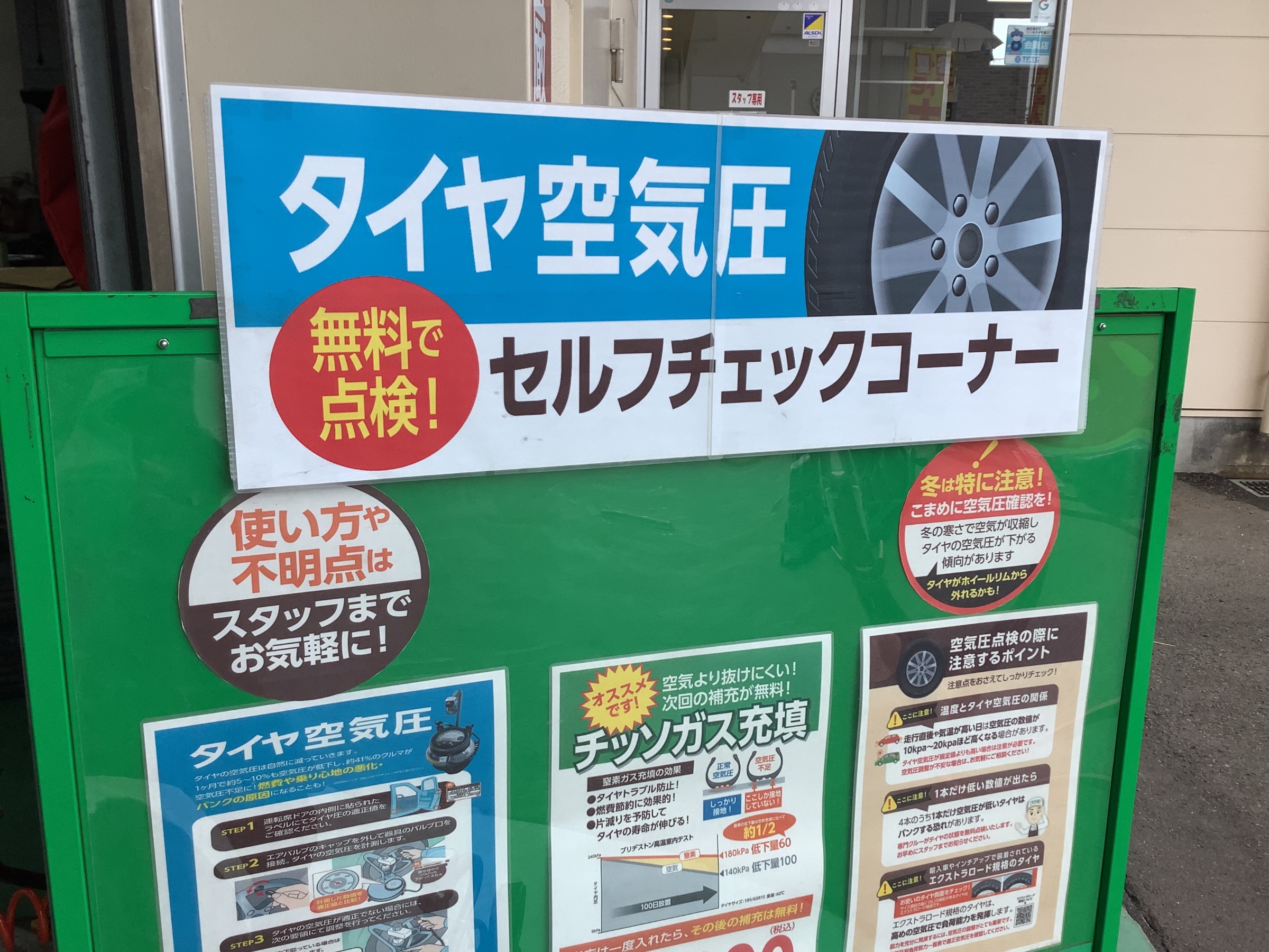 当店では点検はもちろん無料、ご自分で点検調整したい!という方も自由にエアタンクなどご利用いただけるコーナーを設置しております