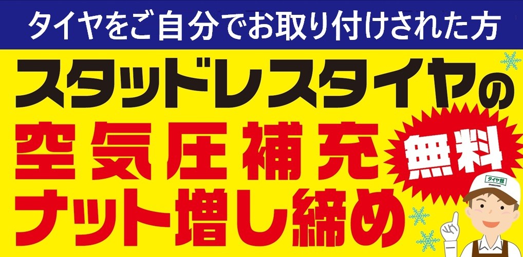 【無料】空気圧点検、補充・ナット増し締め実施中!