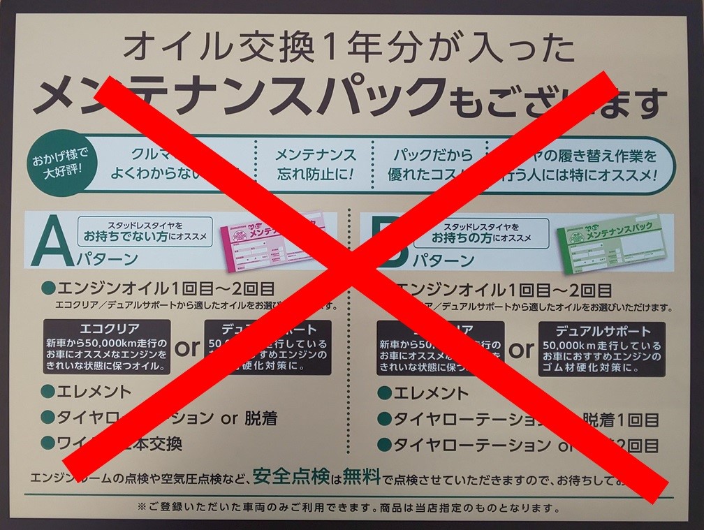 基本メニューはオイルのみ2回分とオイルフィルター1回分です。