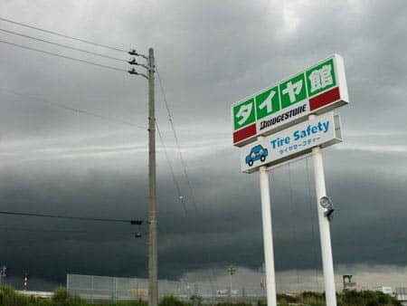 竜巻警報発令!!大慌てで、のぼりや懸垂幕撤収!!