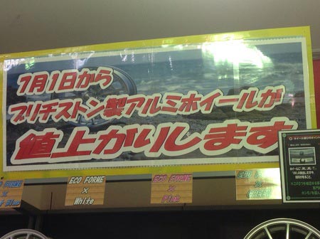 この度ブリヂストン製のアルミホイールの一部商品が値上がりします。