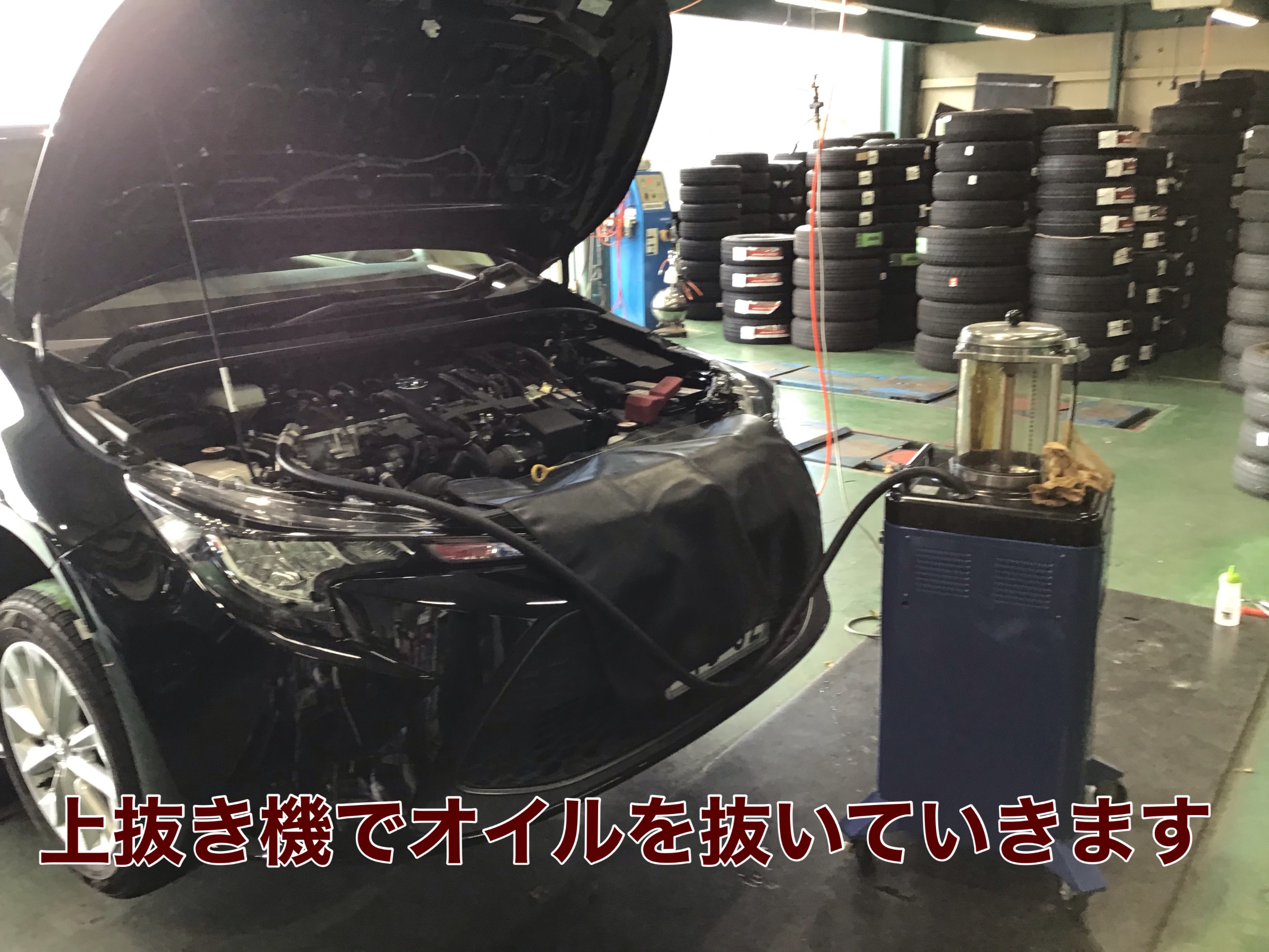 タイア交換が終わった頃に、オイルも抜き切っていますので、