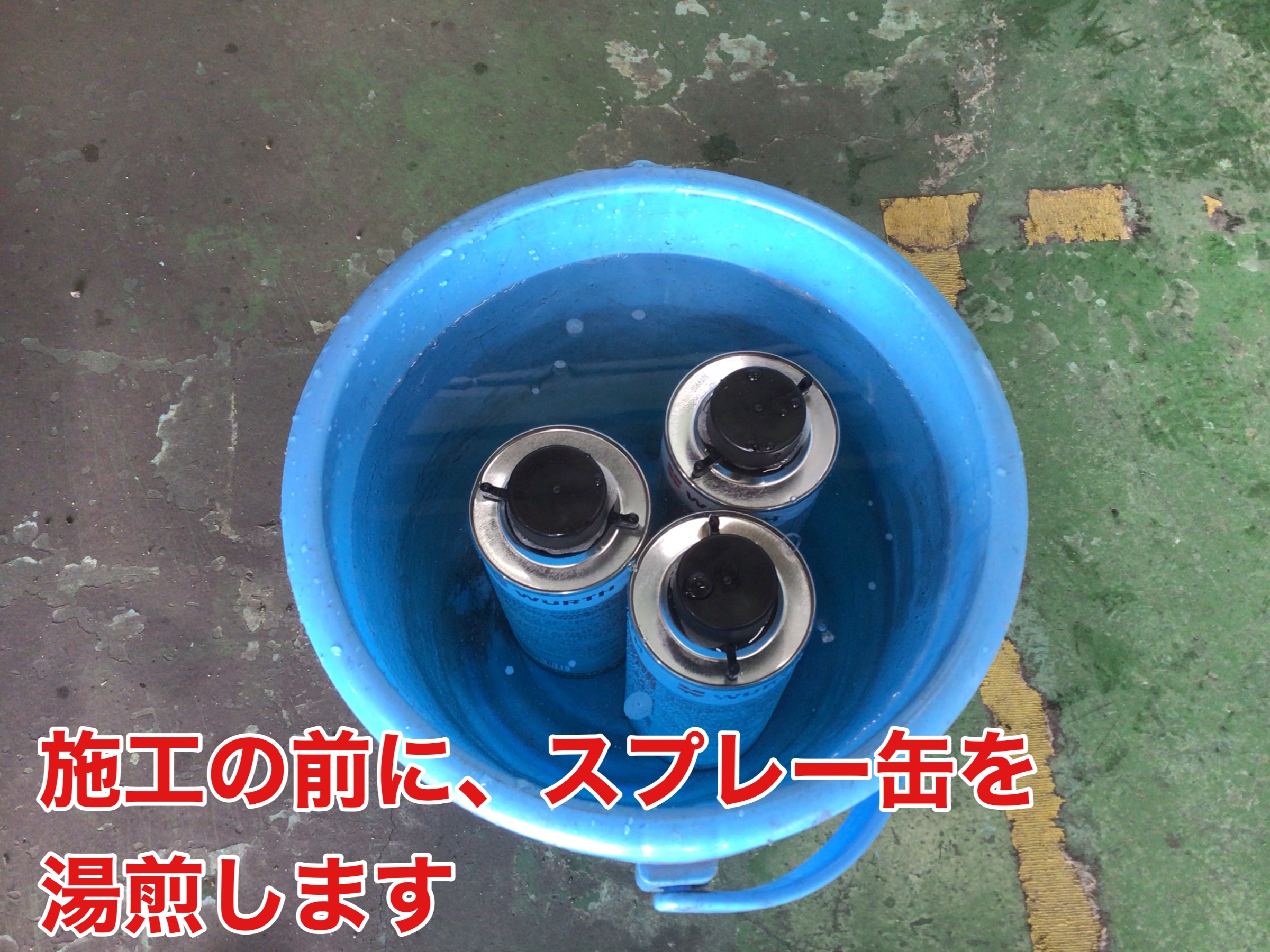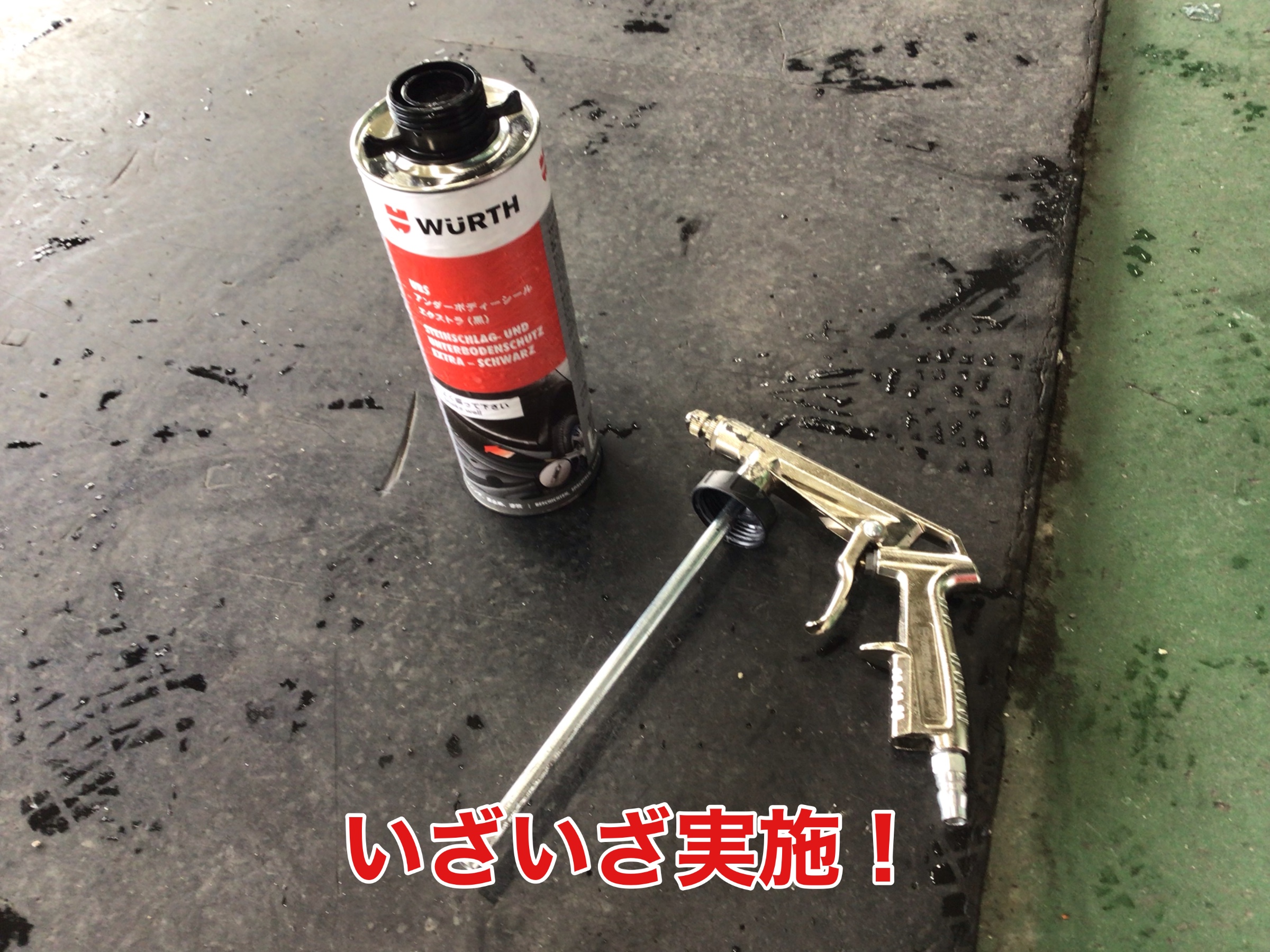 準備と、下回りの乾燥が終わったら施工開始です!