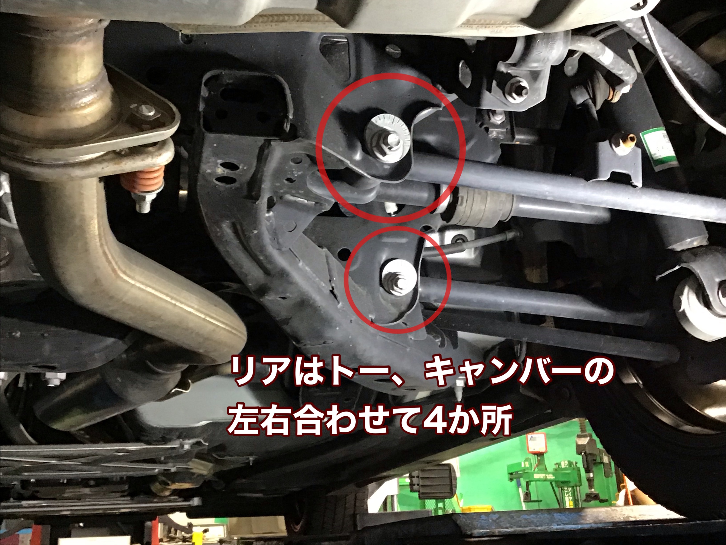 リアは偏芯カムが左右それぞれに2つ前後についており、