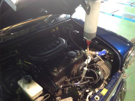 写真のようにエンジンルームに少しずつ入れて馴染ませていきます。