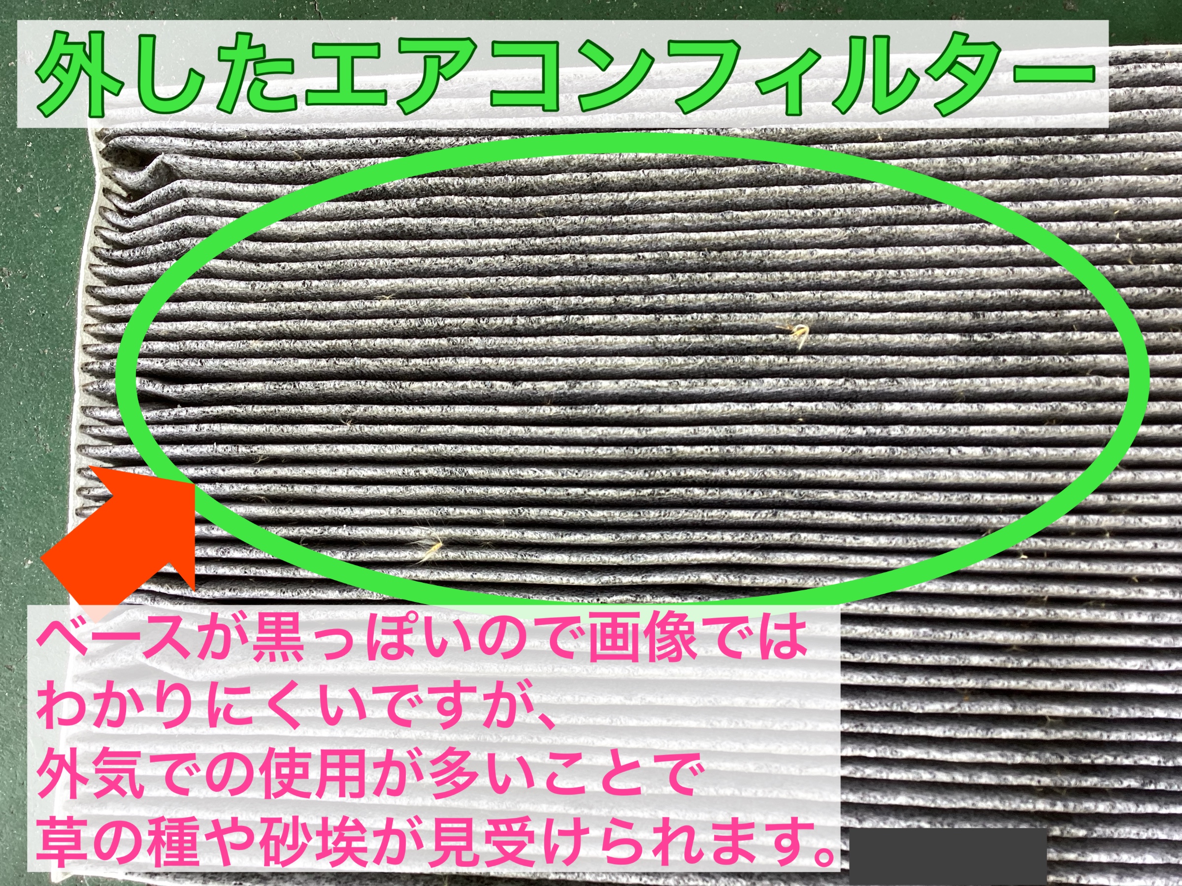 外気が多いと、砂埃や草の種など、