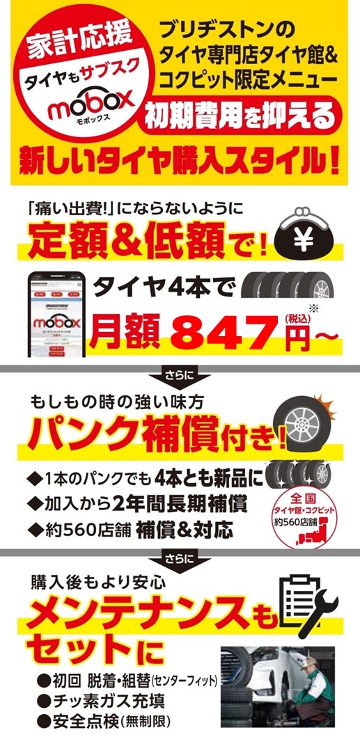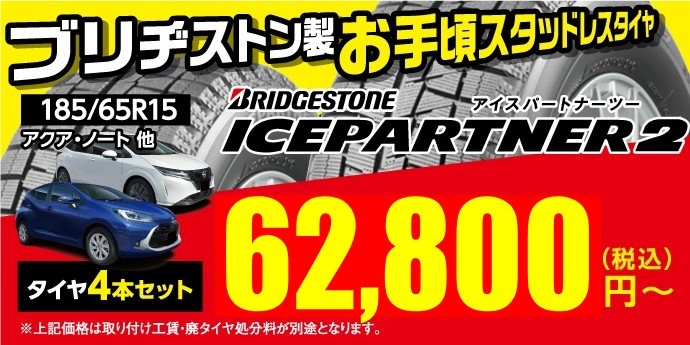 《アクア・ノート》等、お買い得スタッドレスタイヤありますよ!! ポスト 2024年2月2日 【トヨタ アクア】・【日産 ノート】等にお乗りの方! 氷上性能、効きの持続で評判の 《発泡ゴム》を搭載したブリヂストンの スタッドレスタイヤがお買い得!! 便利な【定額】プランを 【低額】でご利用! スタッドレスタイヤとパンク補償、 シーズン毎の履き替えサービスも付いて サブスク〈月額定額〉で購入できます! 詳しくはコチラから⇩ Mobox(モボックス)-ブリヂストンのタイヤとメンテのサブスク(定額) タイヤ館竹尾店では、 タイヤはもちろん、 エンジンオイルやバッテリー、 ワイパーの点検や交換を実施しております。 また 快適ドライブの為に、 無料点検も実施しております。 お気軽にご来店ください。 カテゴリ:タイヤ関連 タイヤ関連 その他商品・サービス 担当:髙橋