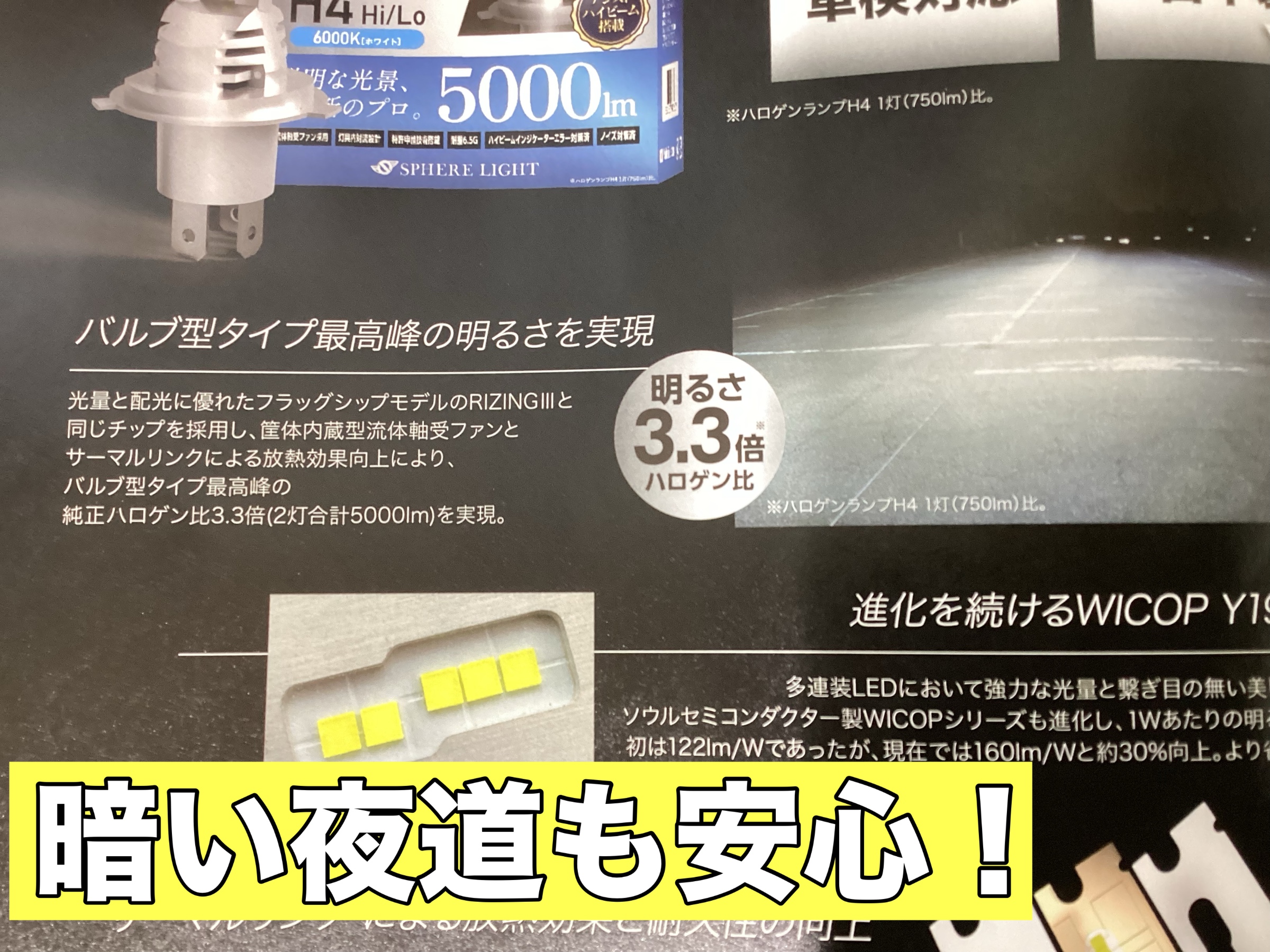 ハロゲンライトの3.3倍の明るさ!!