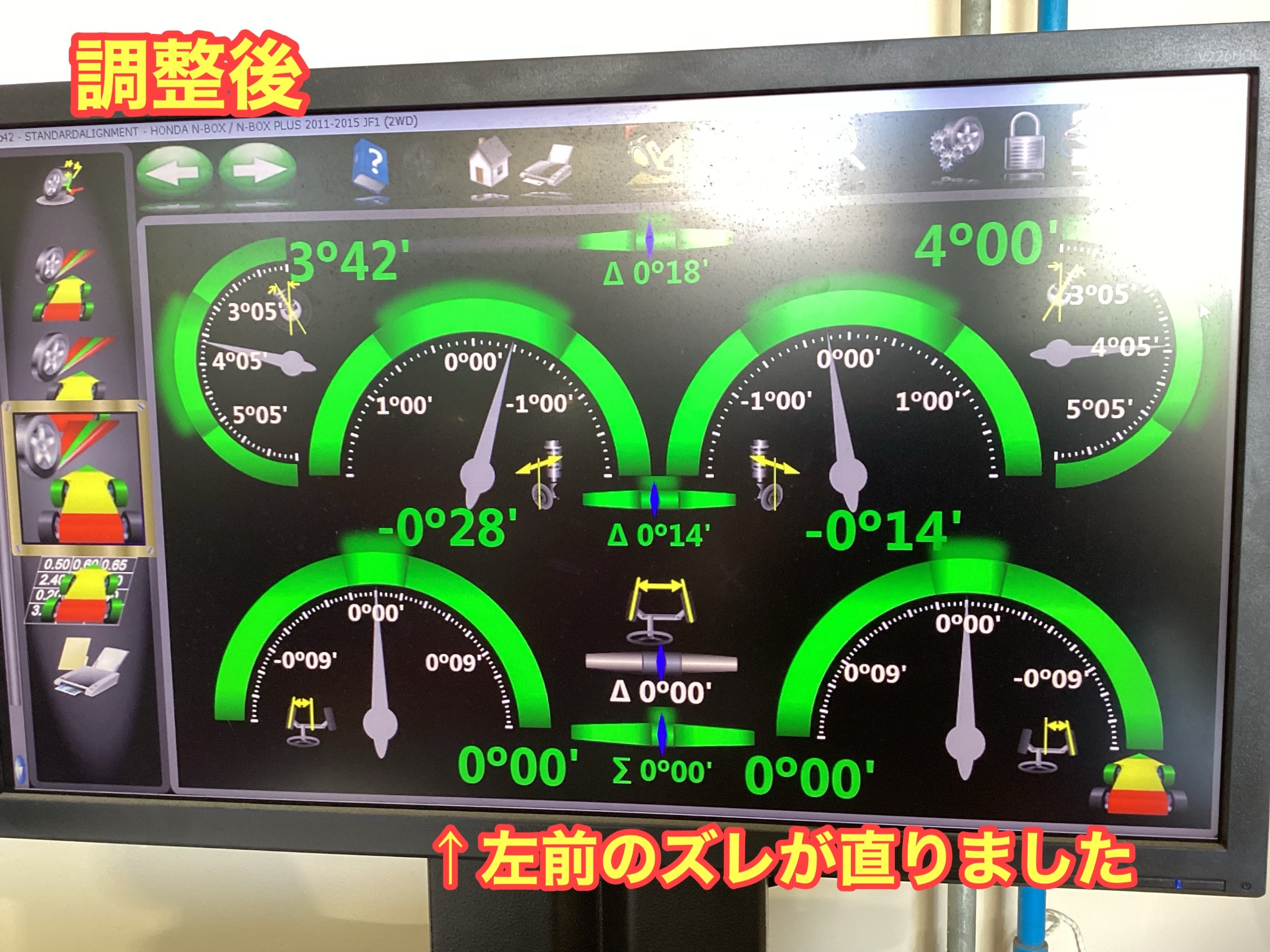 ↑↑↑確かに「左前」のタイヤがチョット「外側」(ガニ股)を向いてしまっています。