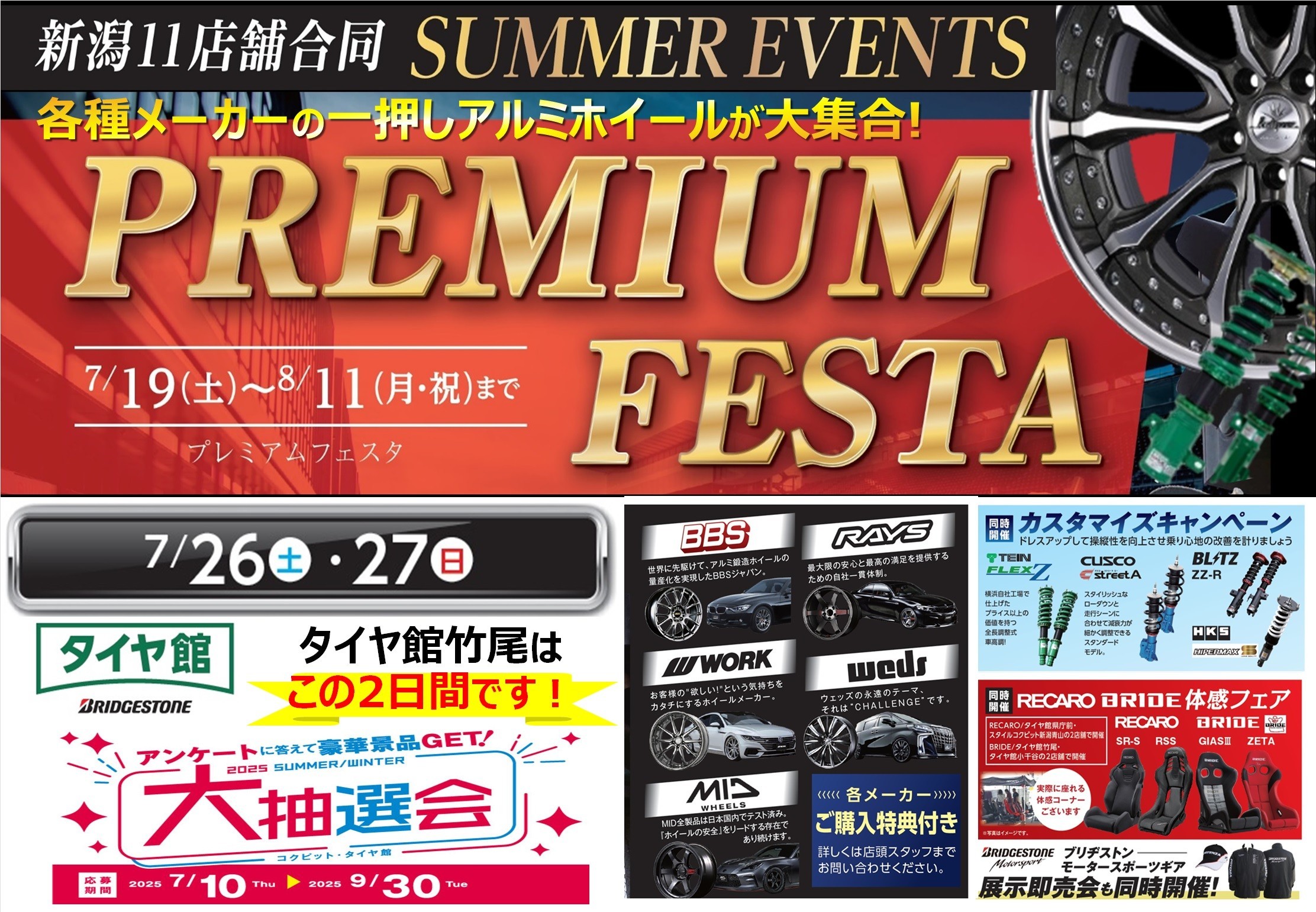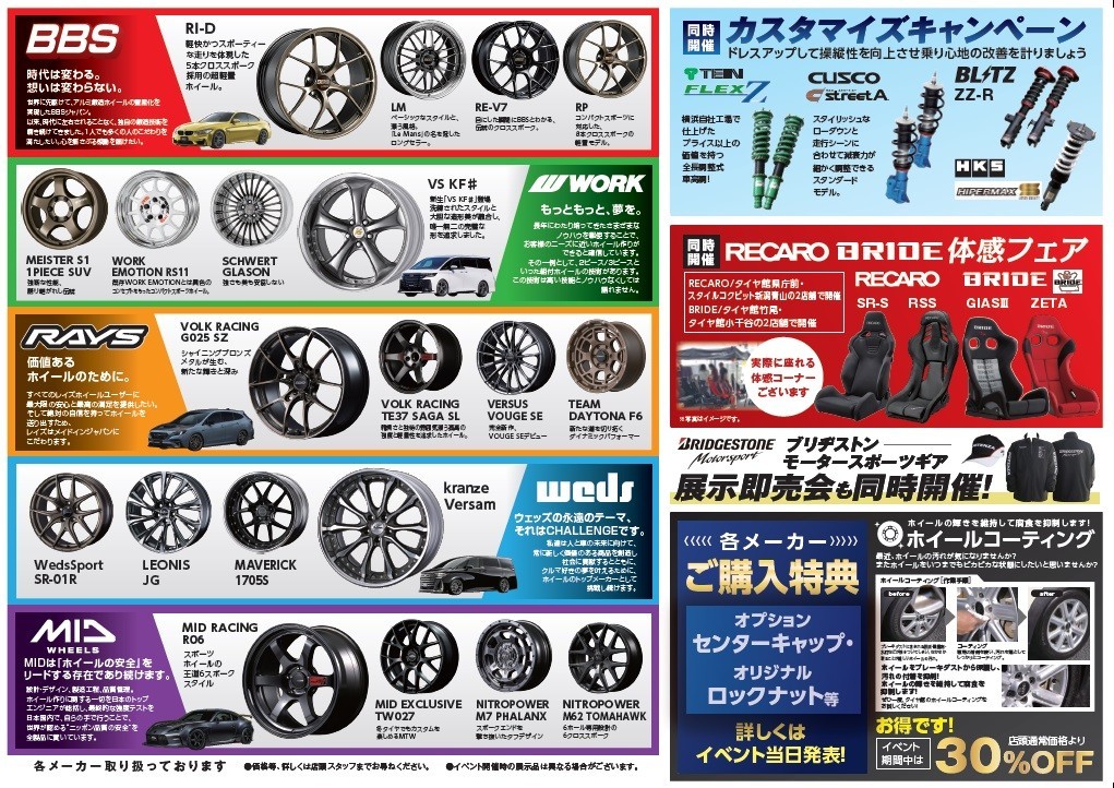 タイヤ館竹尾での大量展示は、7/26㊏~7/27㊋の3日間です!