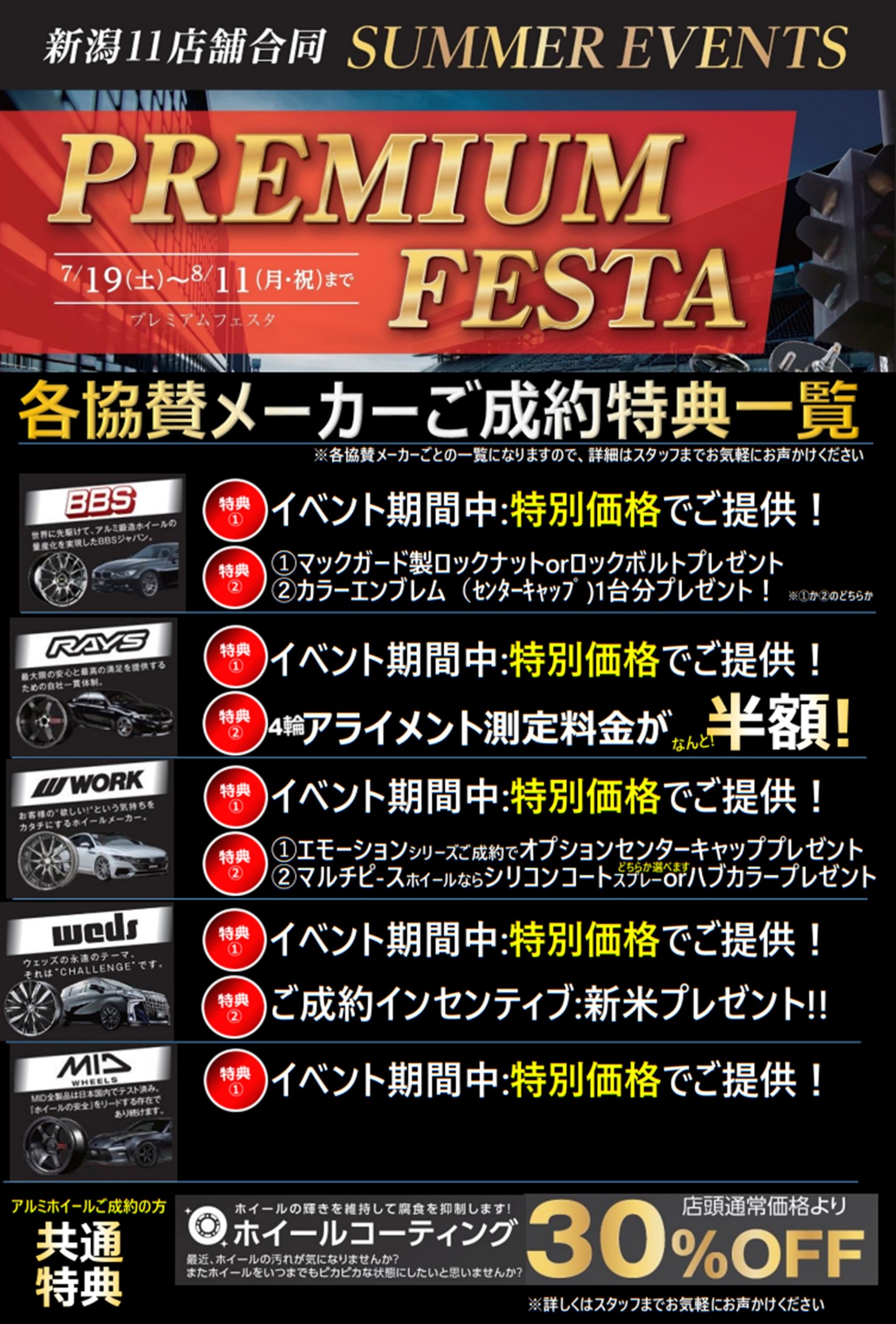 ②各アルミホイールメーカーごとにご購入特典をご用意!