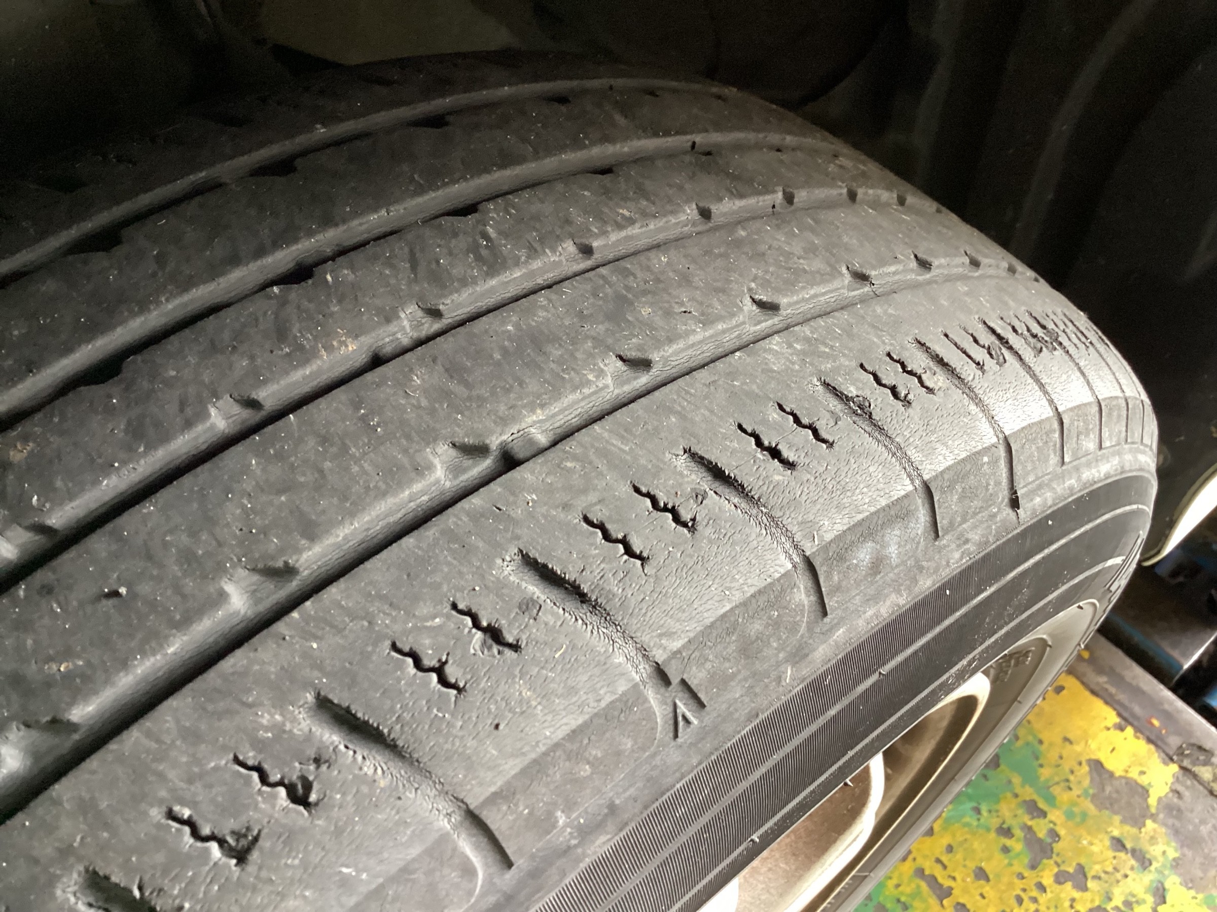新車装着用タイヤで摩耗とひび割れが見受けられます。