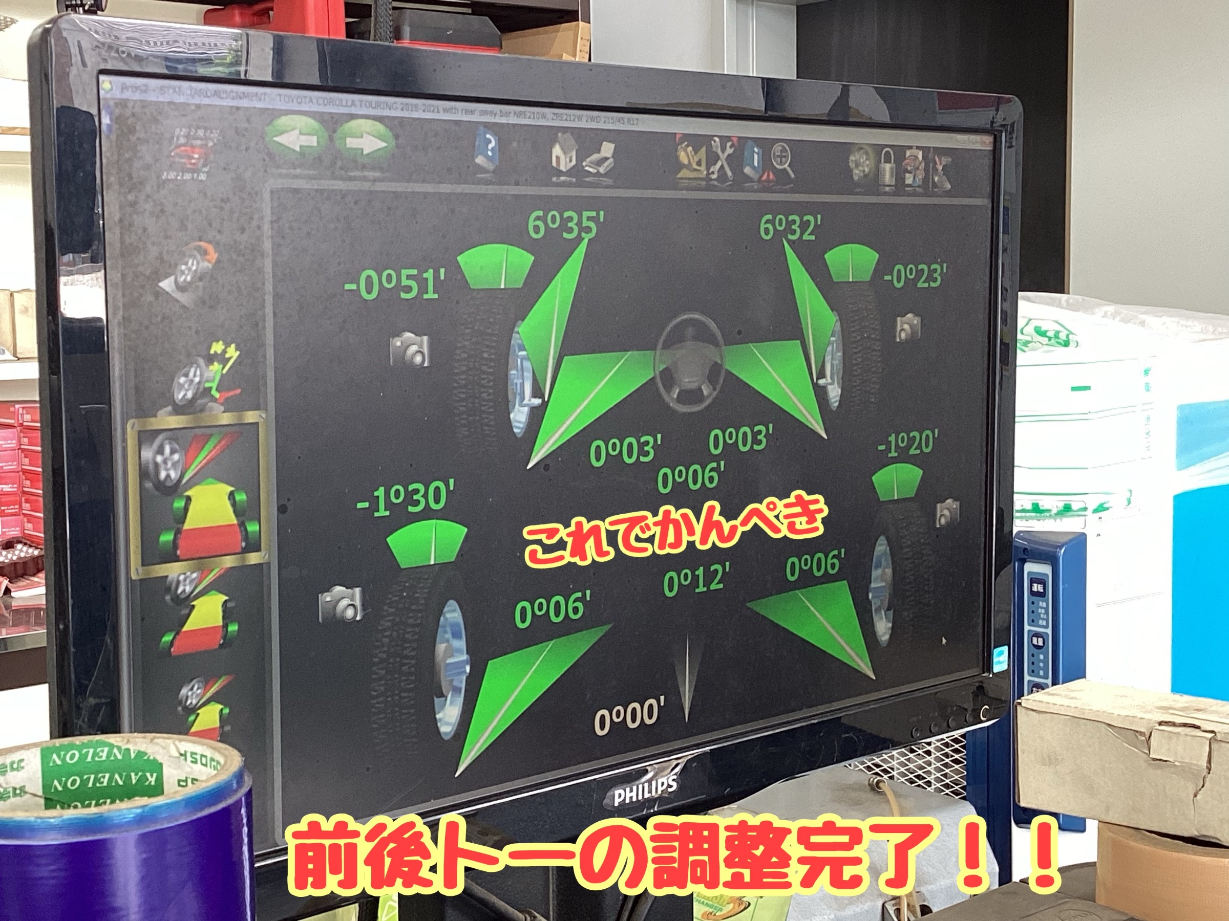 全体的にトーアウト気味にずれています。 今回は前後トーの調整です!