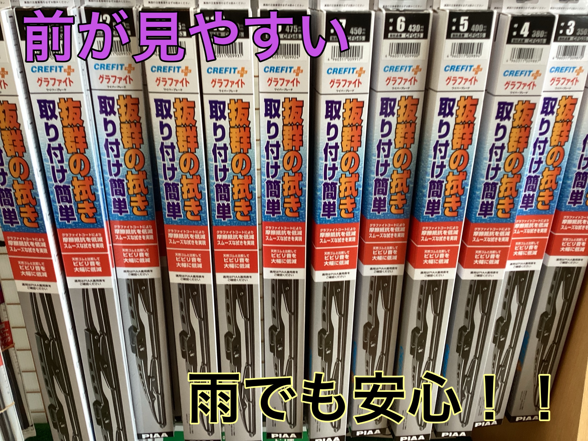 豊富な長さのワイパーがありますので