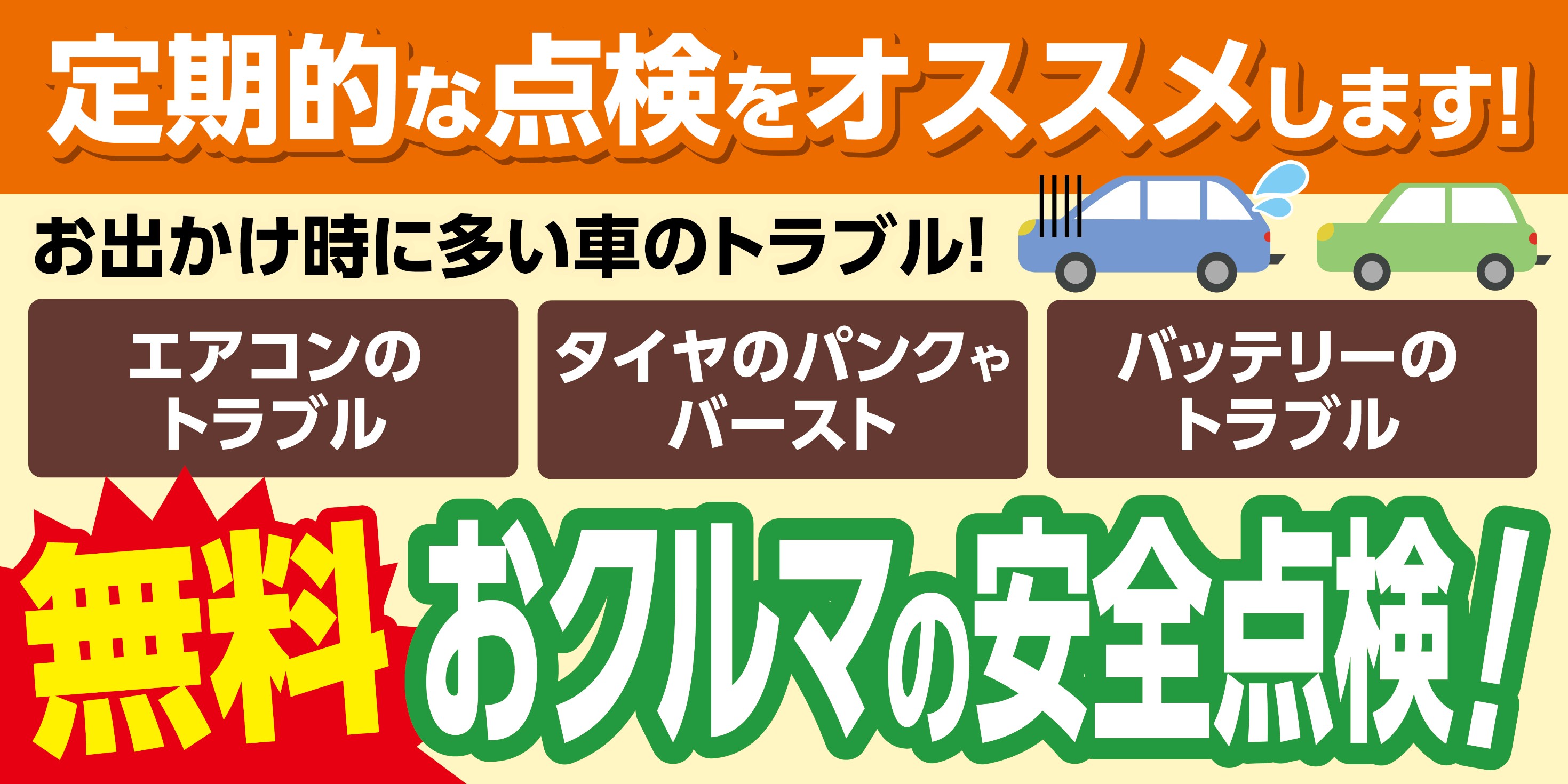 快適なドライブにするためにもお出かけ前におクルマの安全点検をタイヤ館にお任せください(*^^)v