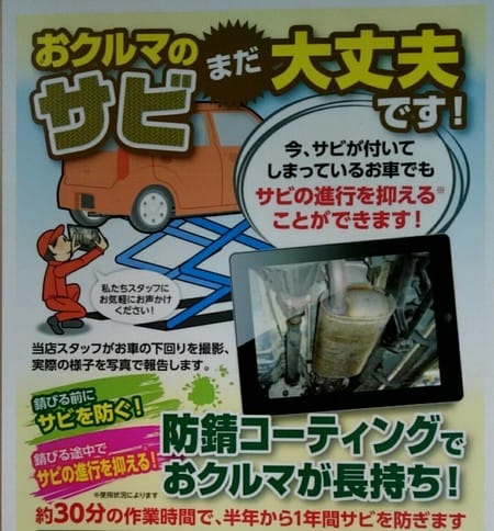 お車の下廻りのサビ止め...