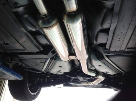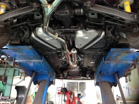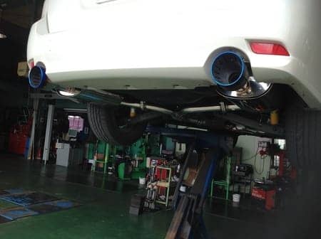 写真のレガシィは新品マフラーのご購入と同時に防錆部分施工を実施