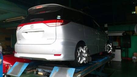 エスティマのタイヤ交換&アライメントです。