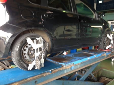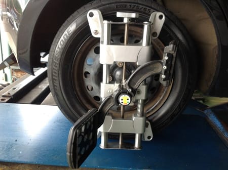 タイヤの性能を十分に発揮できるように車の骨盤矯正(アライメント)も実施しました。