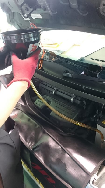 レベルゲージの穴から注入して10分ほどアイドリングして