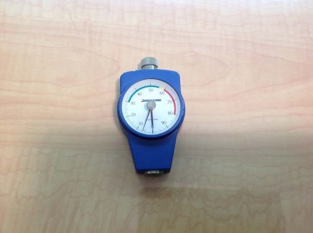 写真はタイヤの柔らかさを測る「硬度計」です。