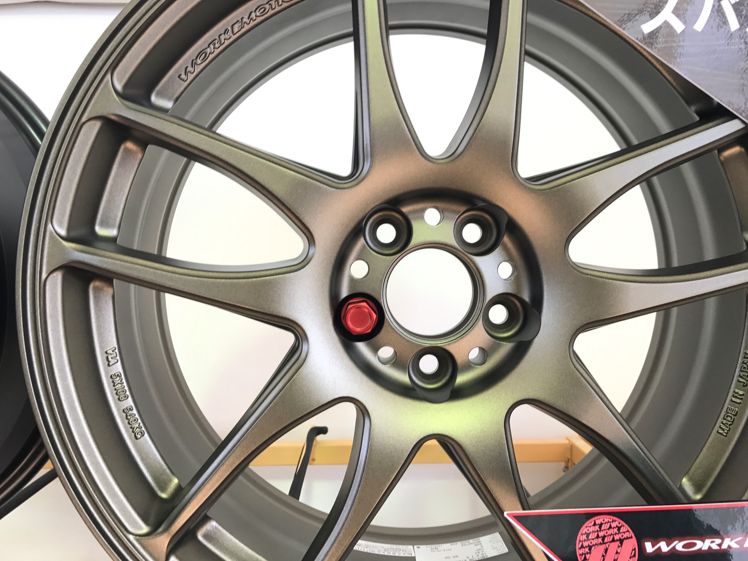 いきなりですが・・・ブロンズのホイールに赤のカラーナットの組み合わせです。