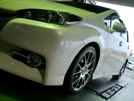 後期型のWISHはフロントバンパーが2カラードになり、アルミホイールのカラーリングともばっちり☆