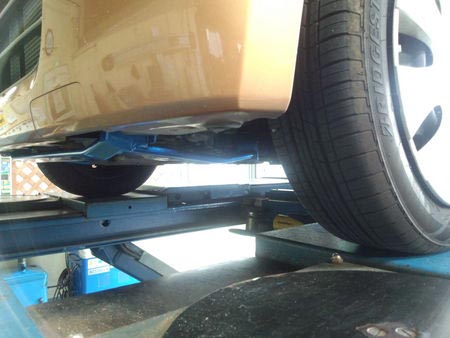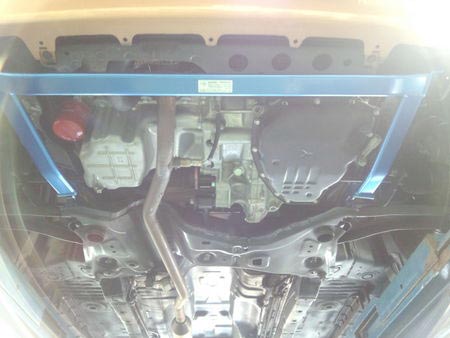 写真右:最近の車はロアアームバーを装着しても最低地上高が下がることはありません。
