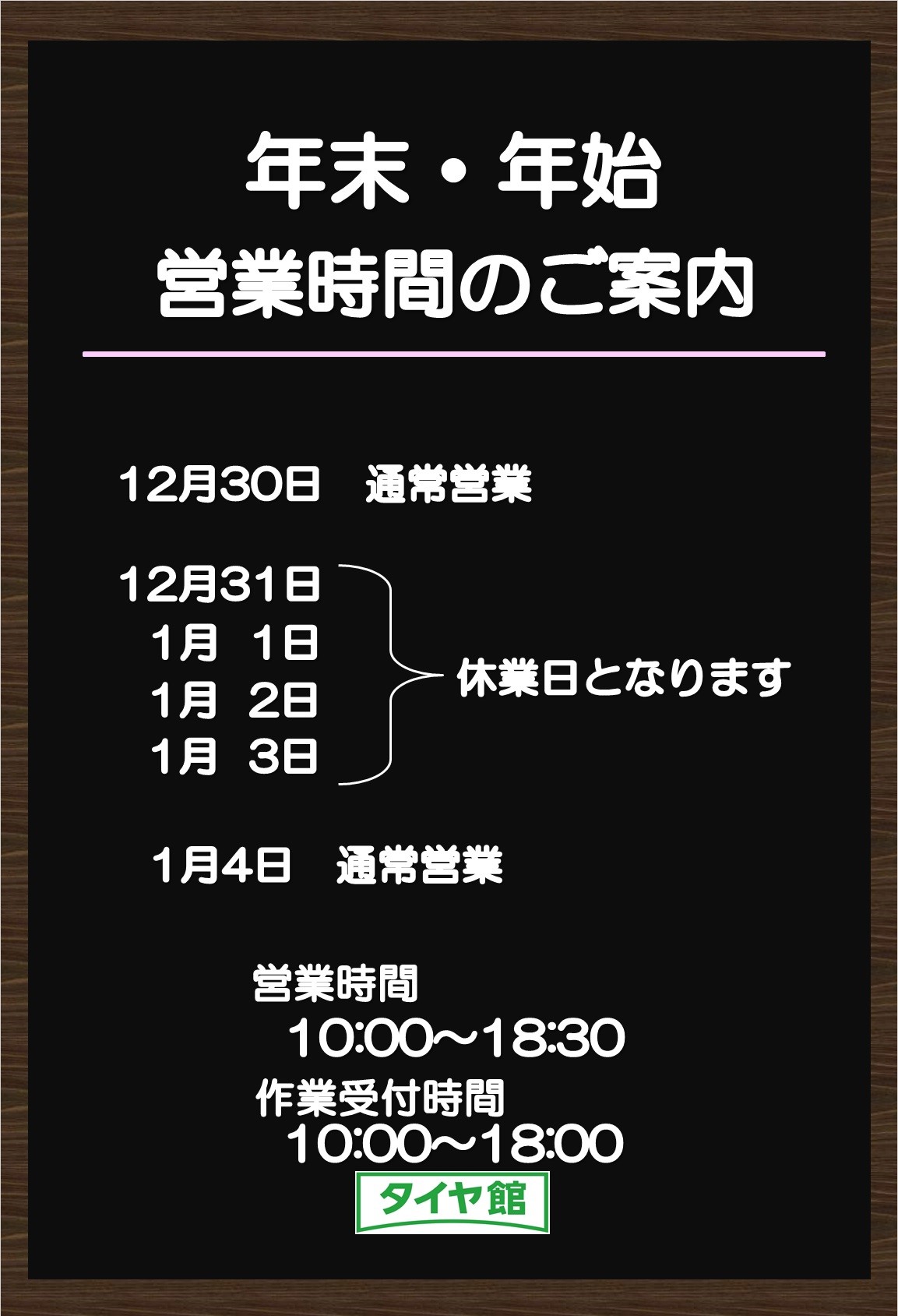 2018年もタイヤ館竹尾をご愛顧いただきありがとうございました。