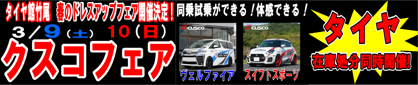 さて、タイヤ館竹尾春の恒例イベントCUSUCOフェアまであと5日となりました(^^)
