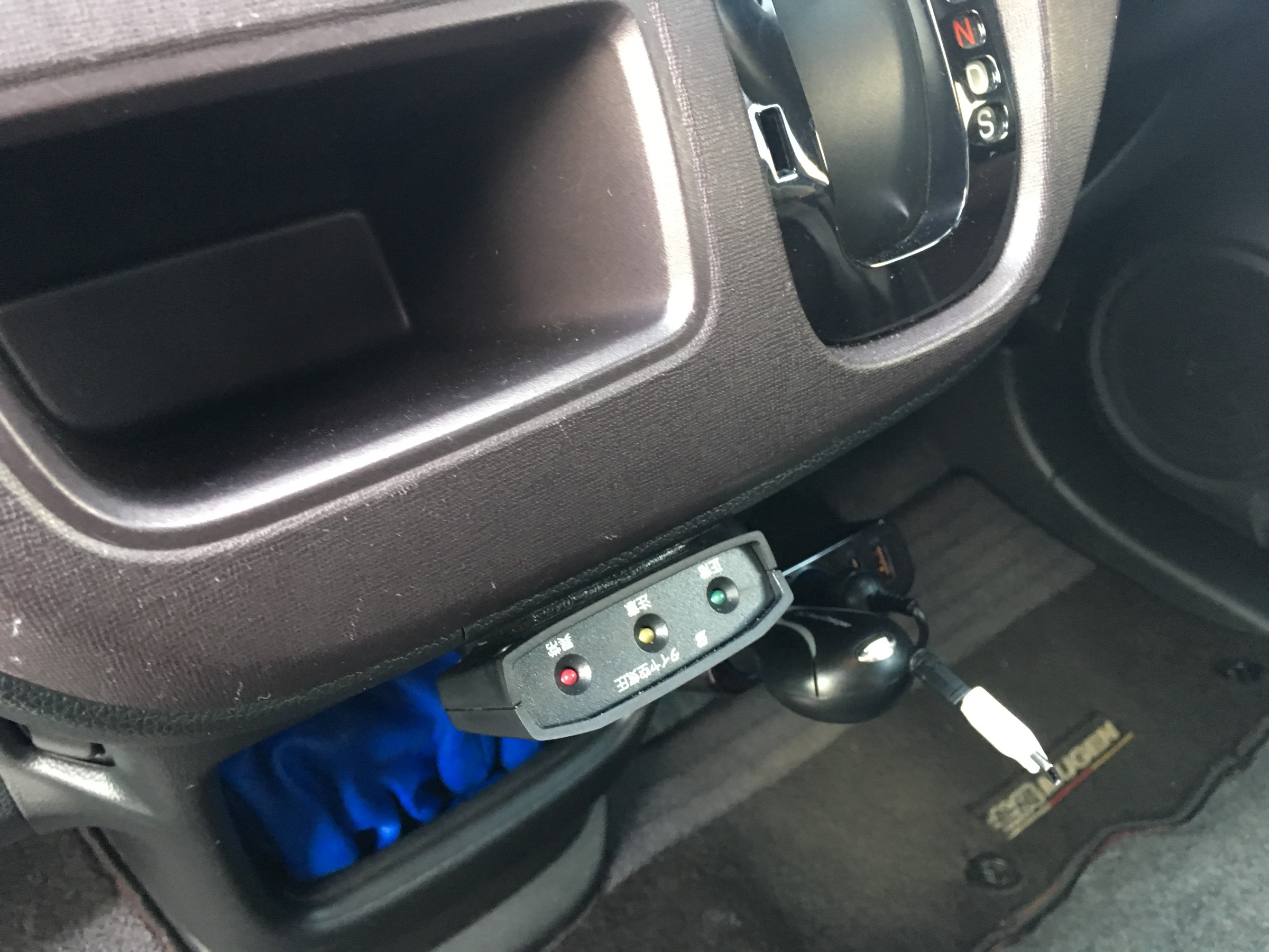今回はセンターコンソールのこの辺りに取り付けました。