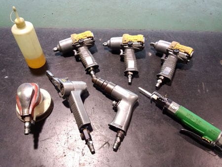エアツールには定期的に潤滑用のオイルを給油しなければ、内部の部品消耗が早いのでとても大切なメンテナンスの一つです。