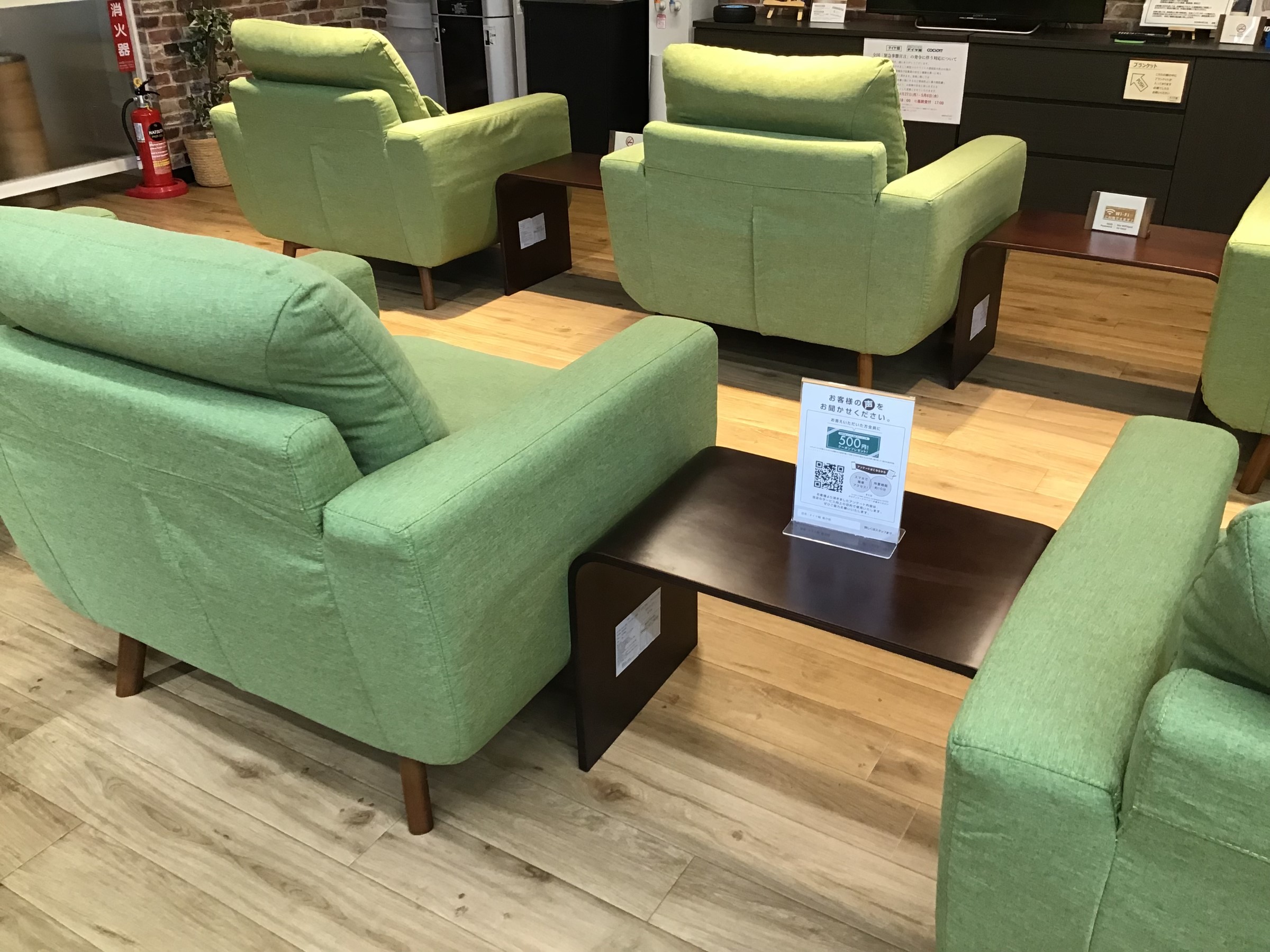 ウェイティングルームに設置しているソファの間隔を