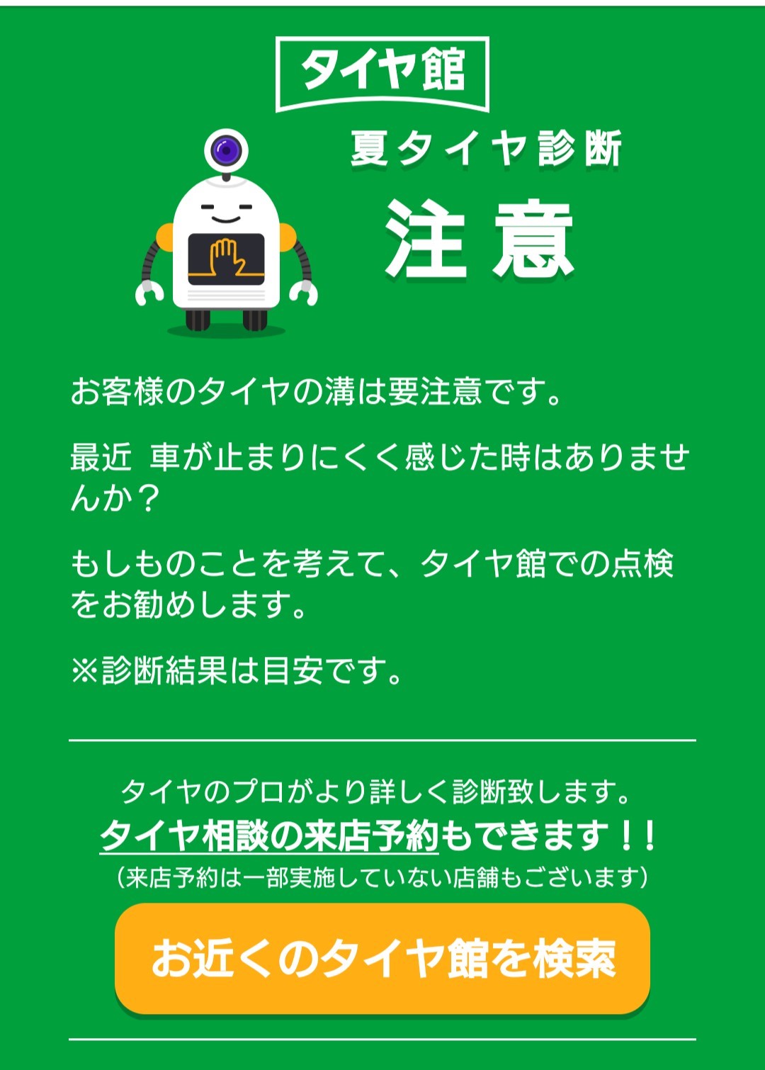 お近くのタイヤ館に無料点検にご来店ください(^^)/